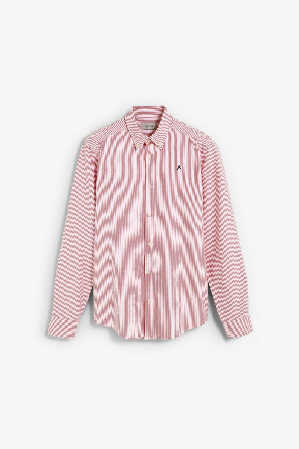 Oxford shirt made of 100% BCI cotton. Button fastening, Striped print. Long sleeves with button fastening. Contrast embroidered skull detail on the chest.