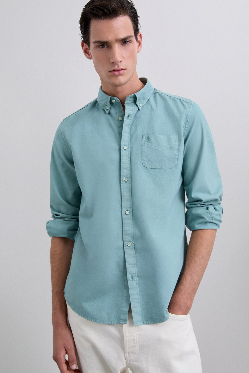 Shirt made of 100% BCI cotton. Regular fit. Matching embroidered skull detail on the chest. Buttoned collar. Long sleeves with buttoned cuffs. Patch pocket on the chest. Front button fastening.