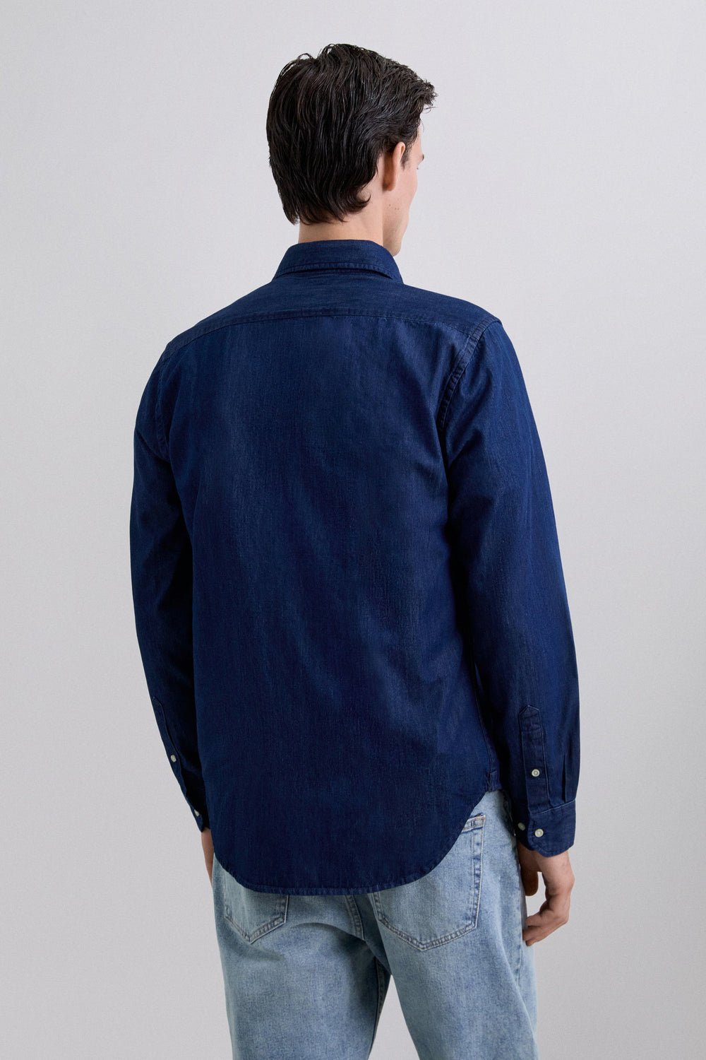 Denim shirt made of 100% cotton with peach finish. Regular fit, spread collar and button fastening. Long sleeves with buttoned cuffs. Contrast embroidered skull on the chest.