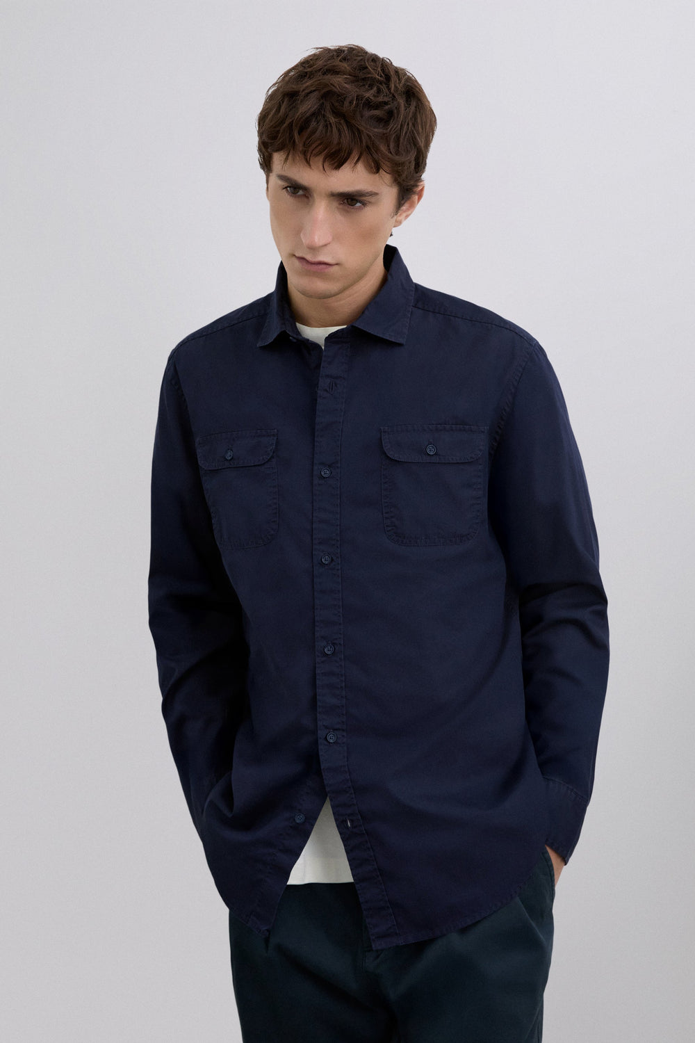 Shirt made of cotton. Regular Fit. Long sleeves with buttoned cuffs. Front button fastening. Patch pockets on the chest.