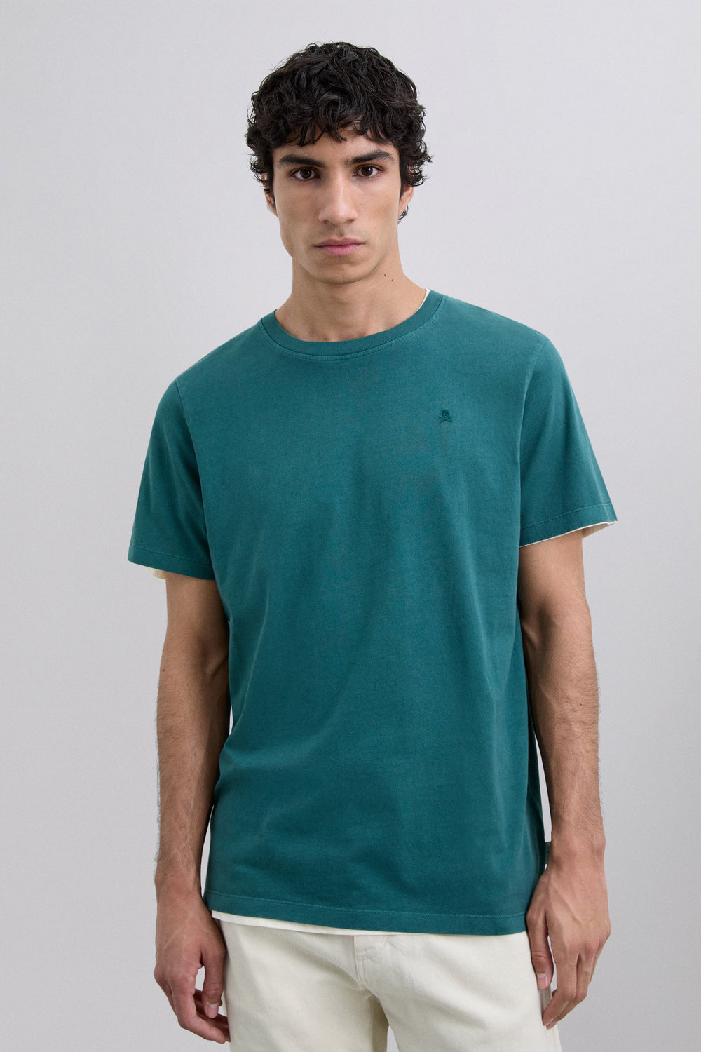 T-shirt made of 100% BCI cotton. Regular fit, round neck and short sleeves. Matching embroidered skull detail.