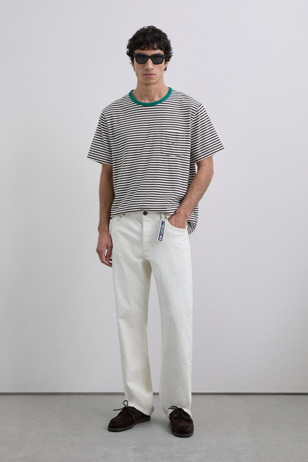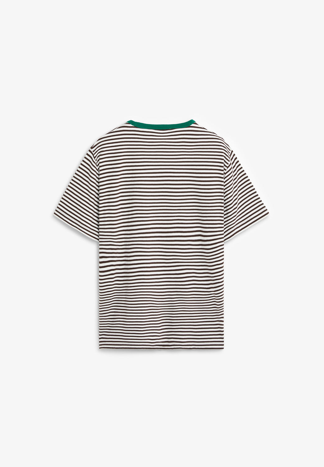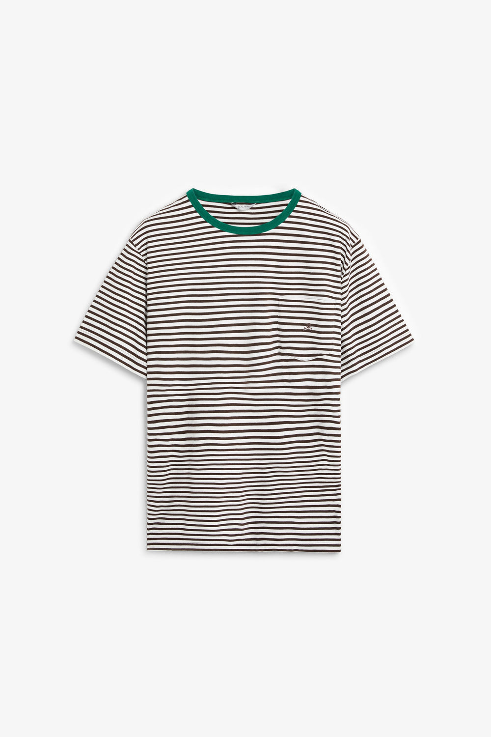 T-shirt made of 100% BCI cotton. Stripe print. Short sleeve. Contrast round neck. Pocket detail on the chest. Embroidered skull.