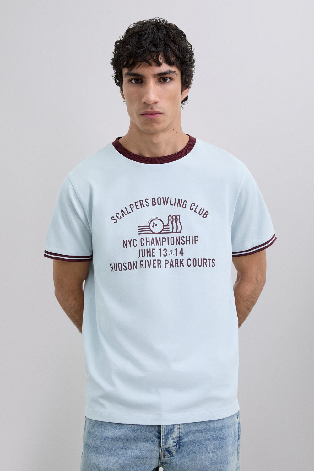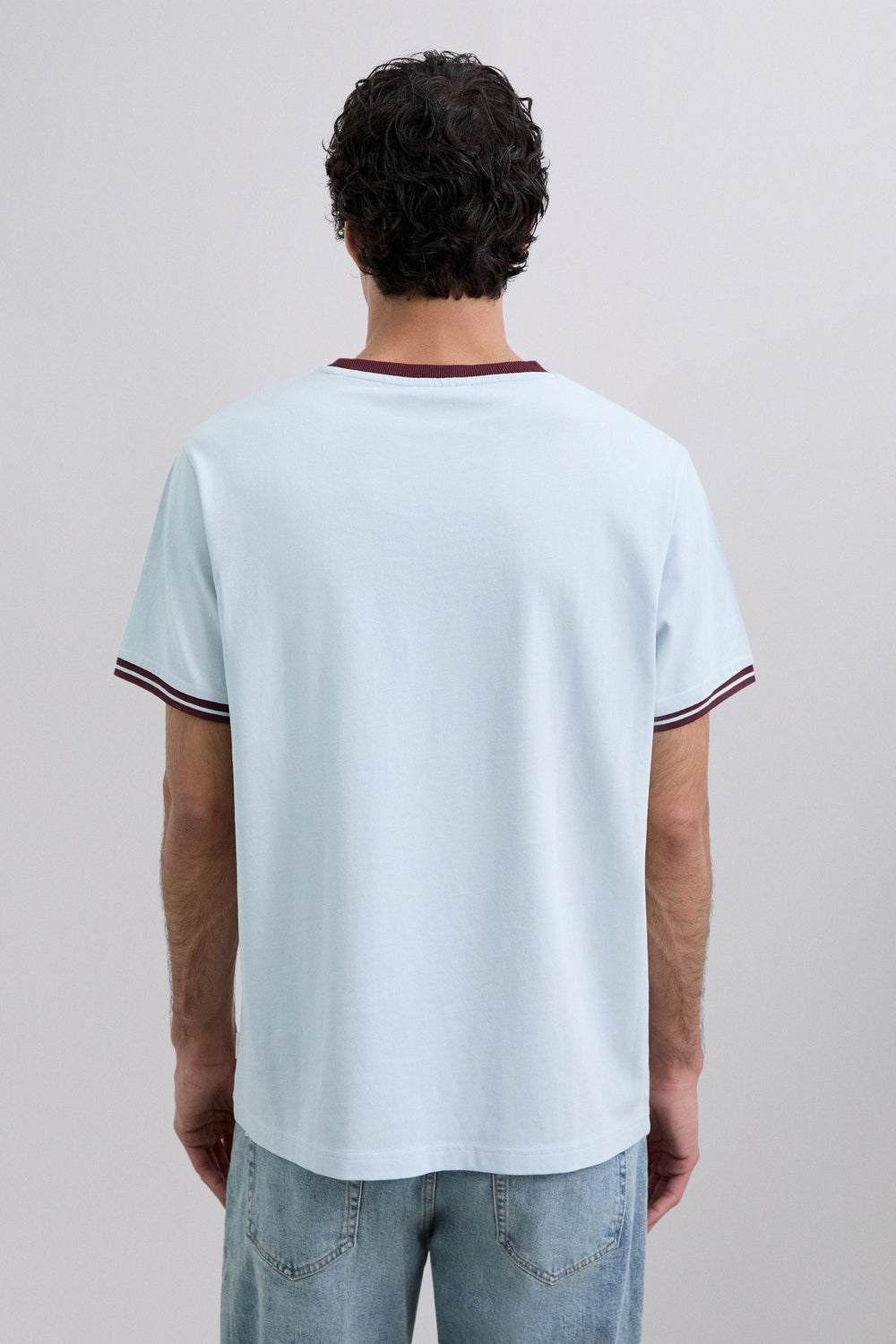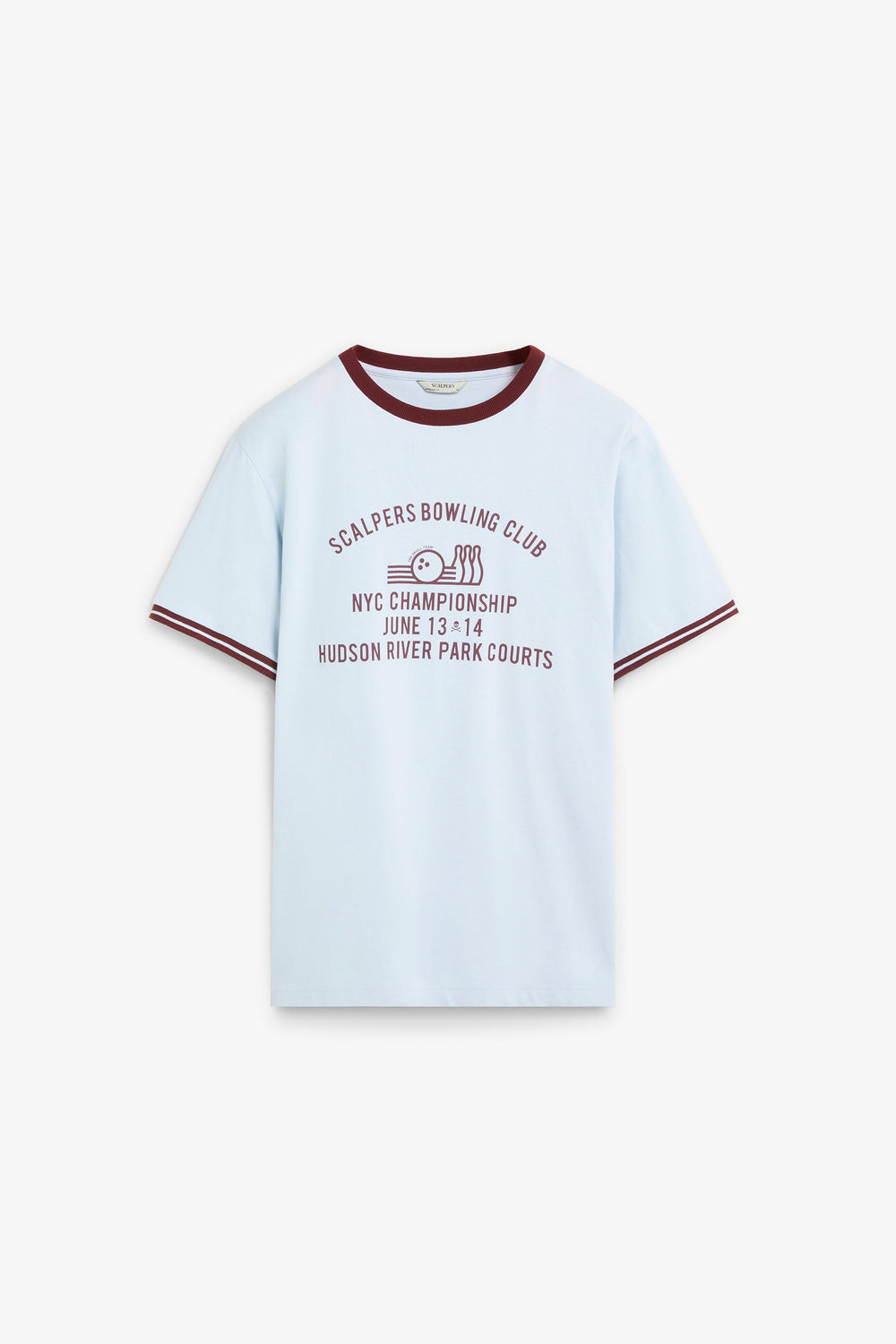 T-shirt made of 100% BCI cotton. Short sleeve. Front print. Regular fit. Contrast ribbed trim on collar and cuffs.