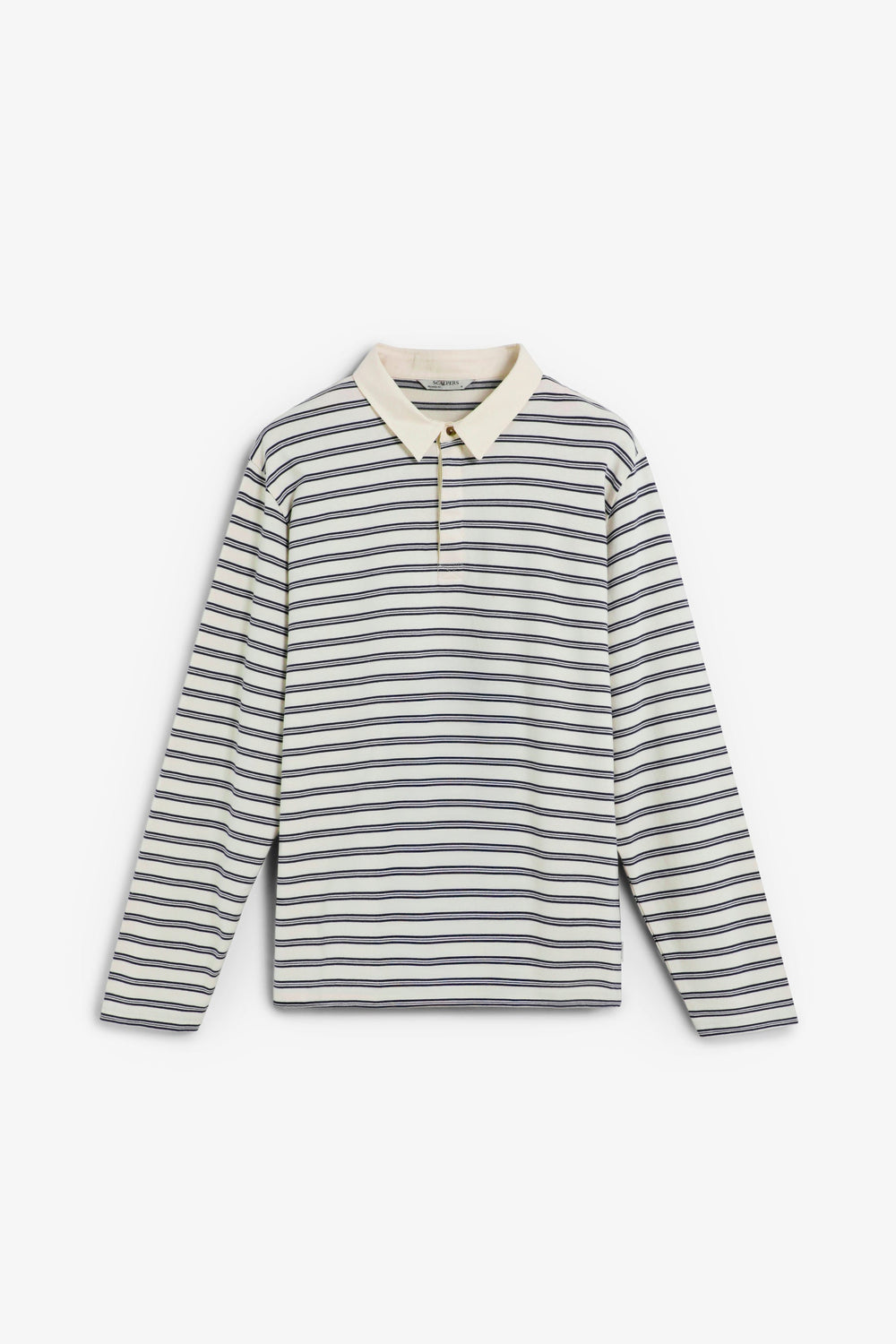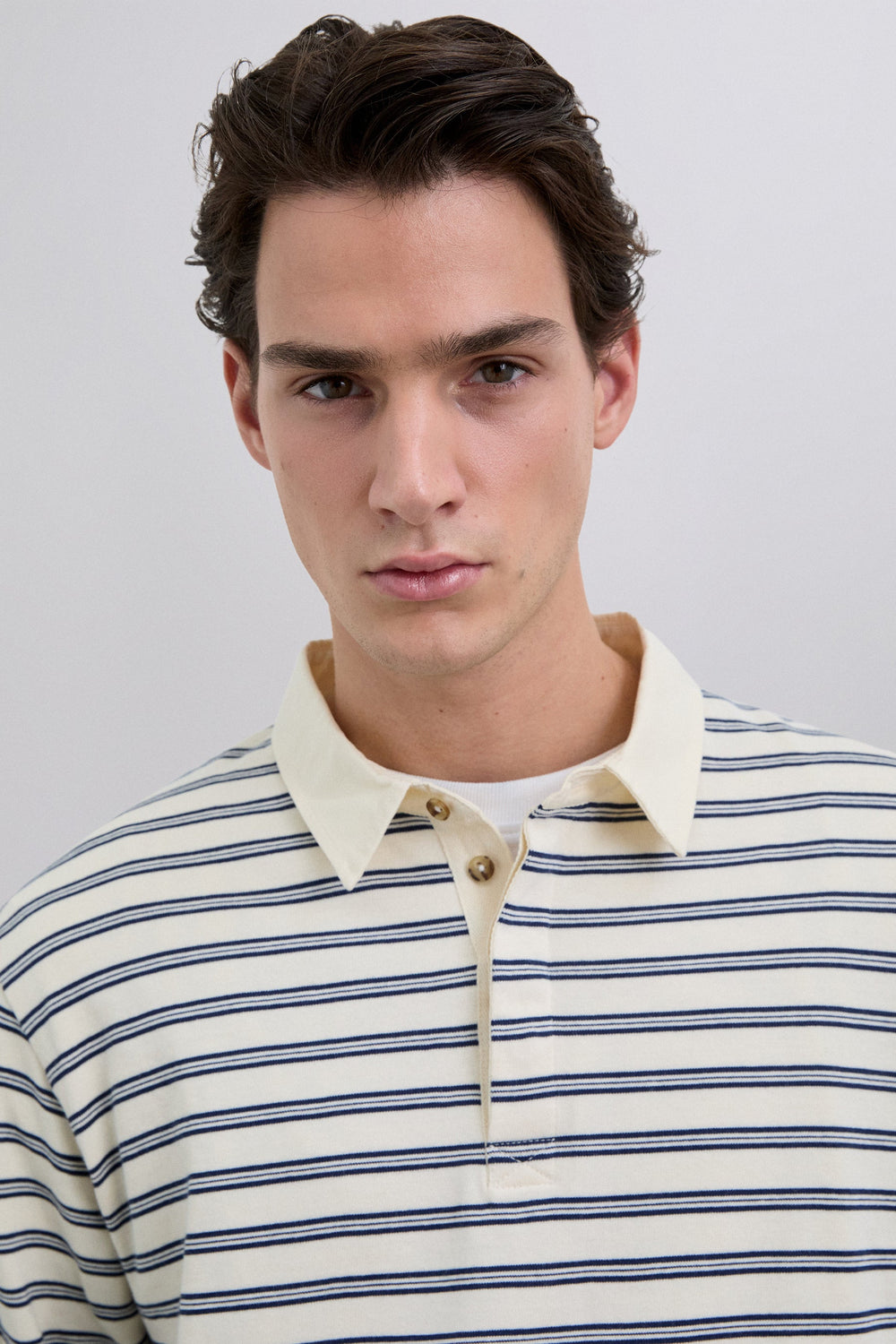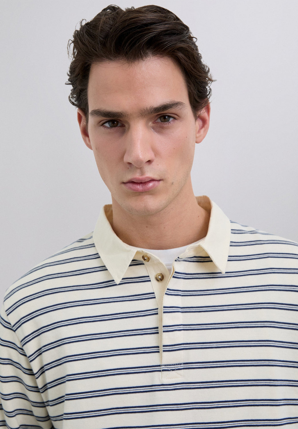Polo shirt made of knitted 100% BCI cotton. Relaxed fit. Long sleeves. Contrast twill collar. Four-button fastening with concealed placket.