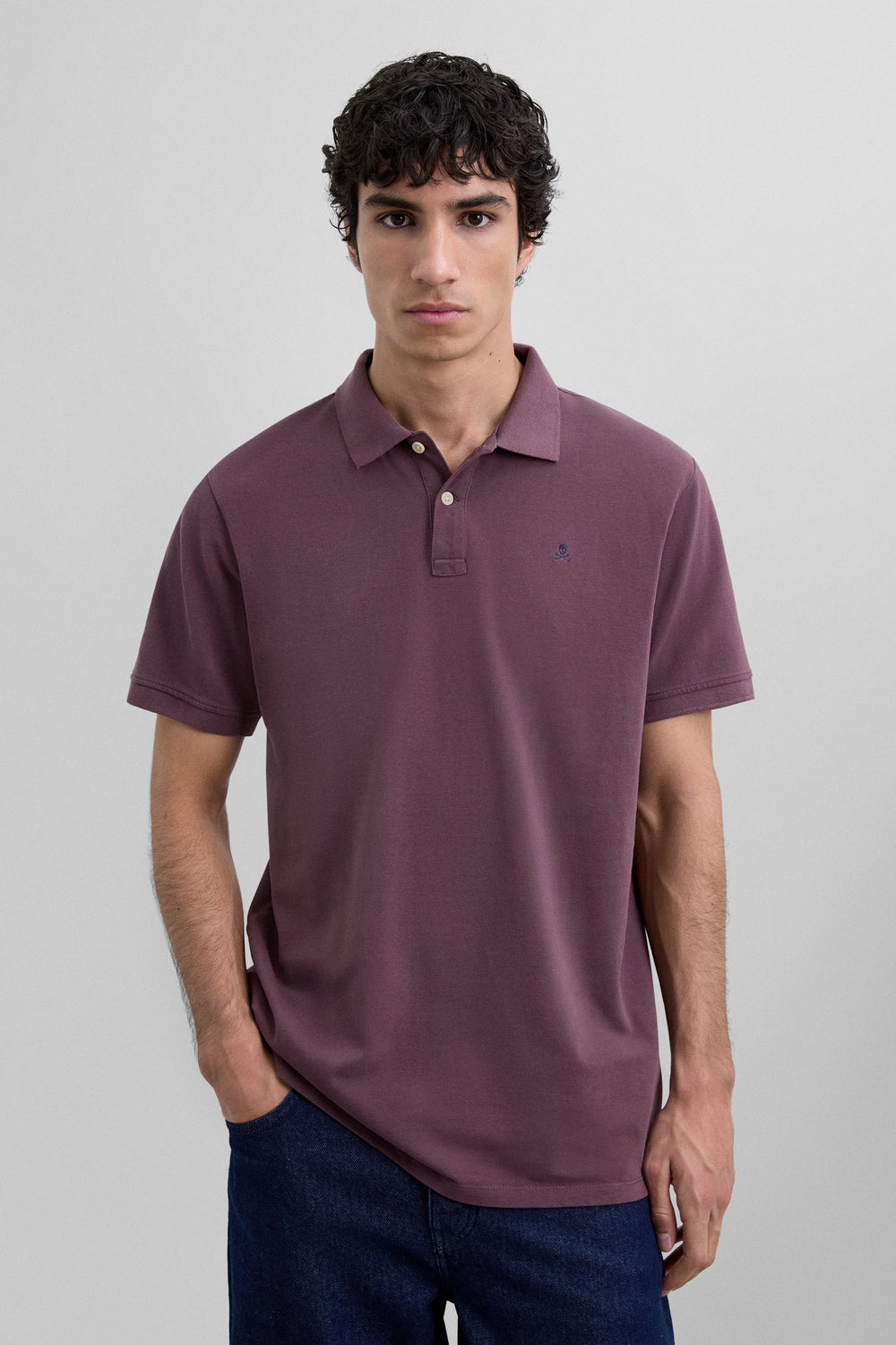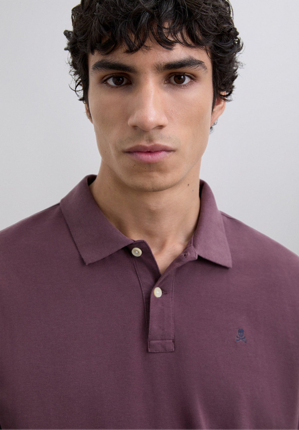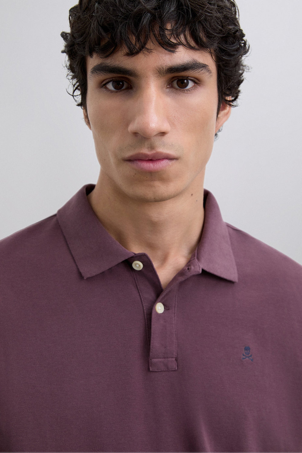 Pique polo shirt made of 100% organic cotton. Short sleeve. Regular fit. Two-button placket. Ribbed collar and cuffs. Contrast embroidered skull on the chest.