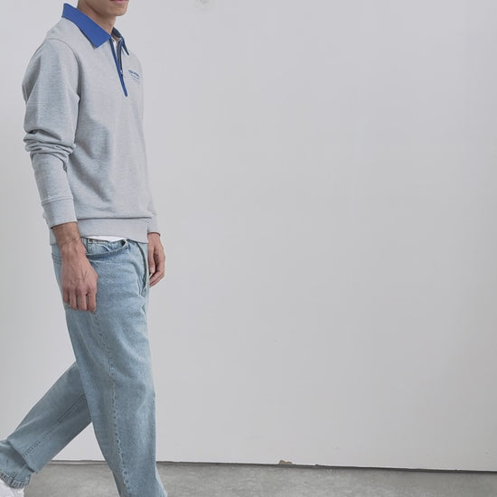 Sweatshirt made of 100% BCI cotton. Polo collar with half zip. Regular fit. Long sleeves. Contrast skull and embroidered logo. Ribbed trim.