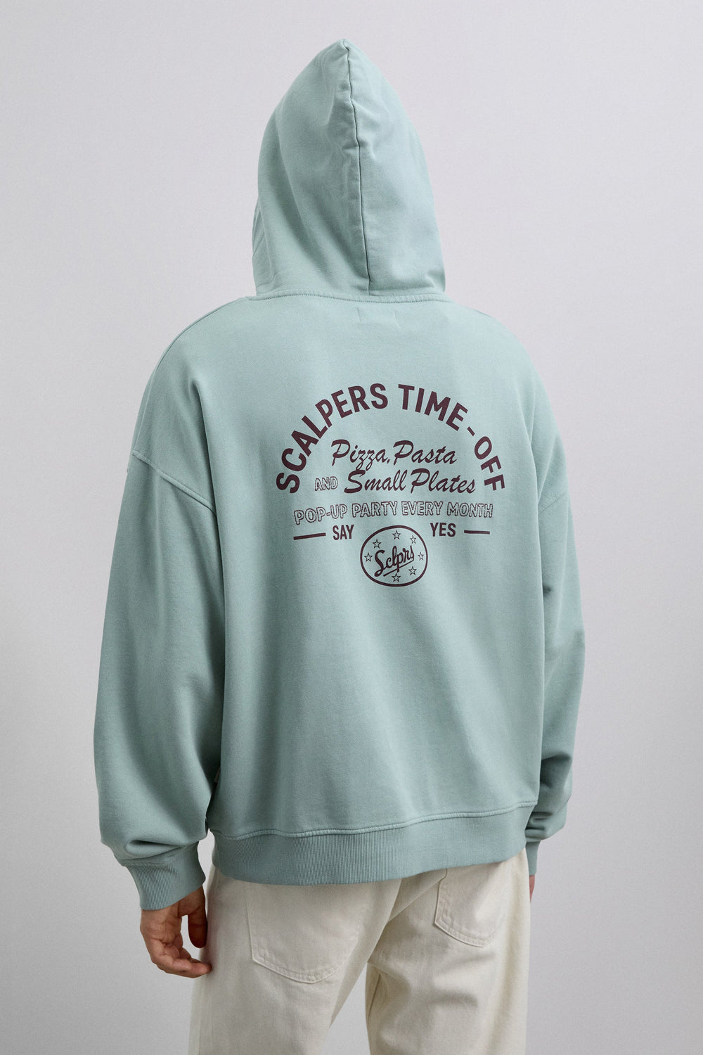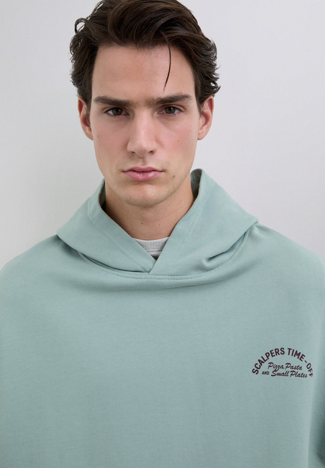 Sweatshirt with hood made of 100% BCI cotton. Print on the chest and logo on the back. Long sleeves. Ribbed trim on waist and cuffs. Pouch pocket on the front.