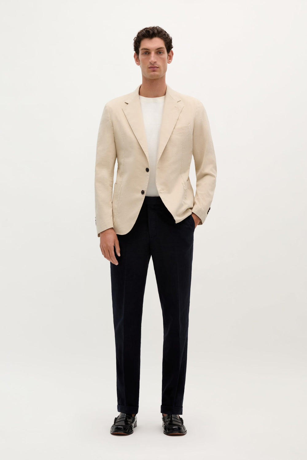 Lightweight blazer. Made of 100% cotton. Regular fit, unstructured and unlined. Notched lapel collar. Button fastening. Long sleeves with working buttons and one closed one. Patch pockets.