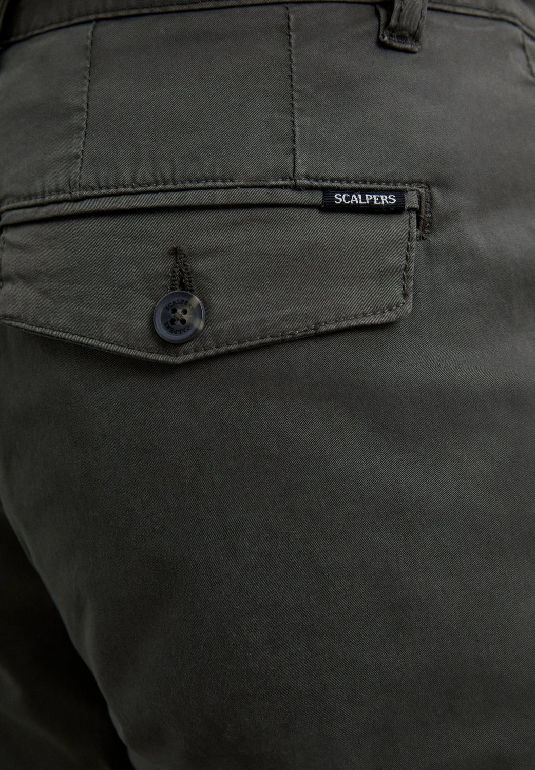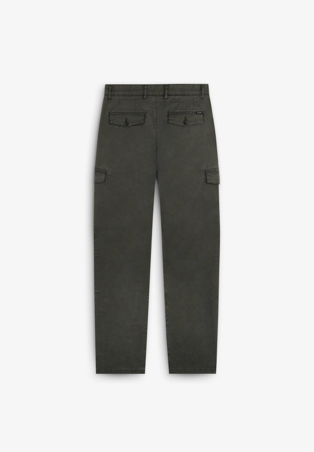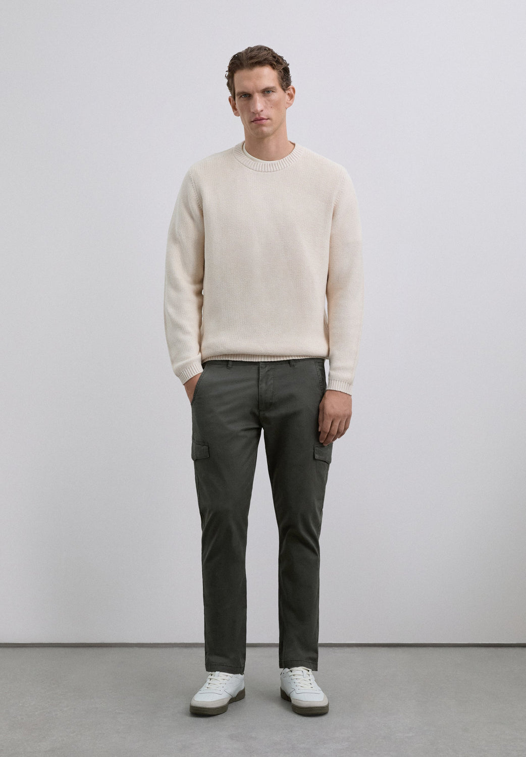 Cargo trousers made of BCI cotton. Slim fit. Two front pockets, back pockets with button fastening and side flap pockets. Belt loops and button and zip fastening. Embroidered logo on the back pocket.