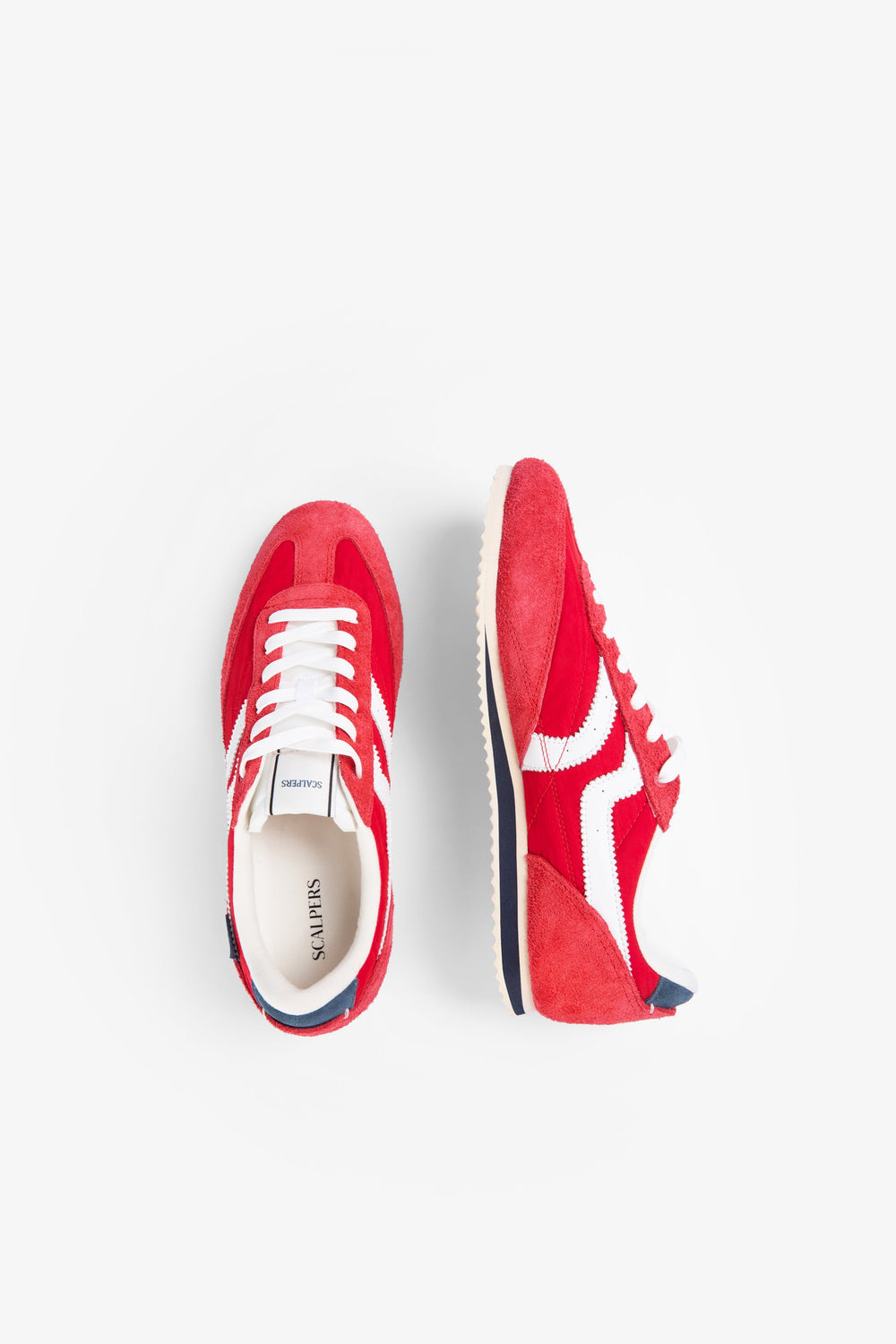Retro-style sneakers. Upper made from a combination of technical fabric pieces and split leather details. Thin sole with contrasting detail.