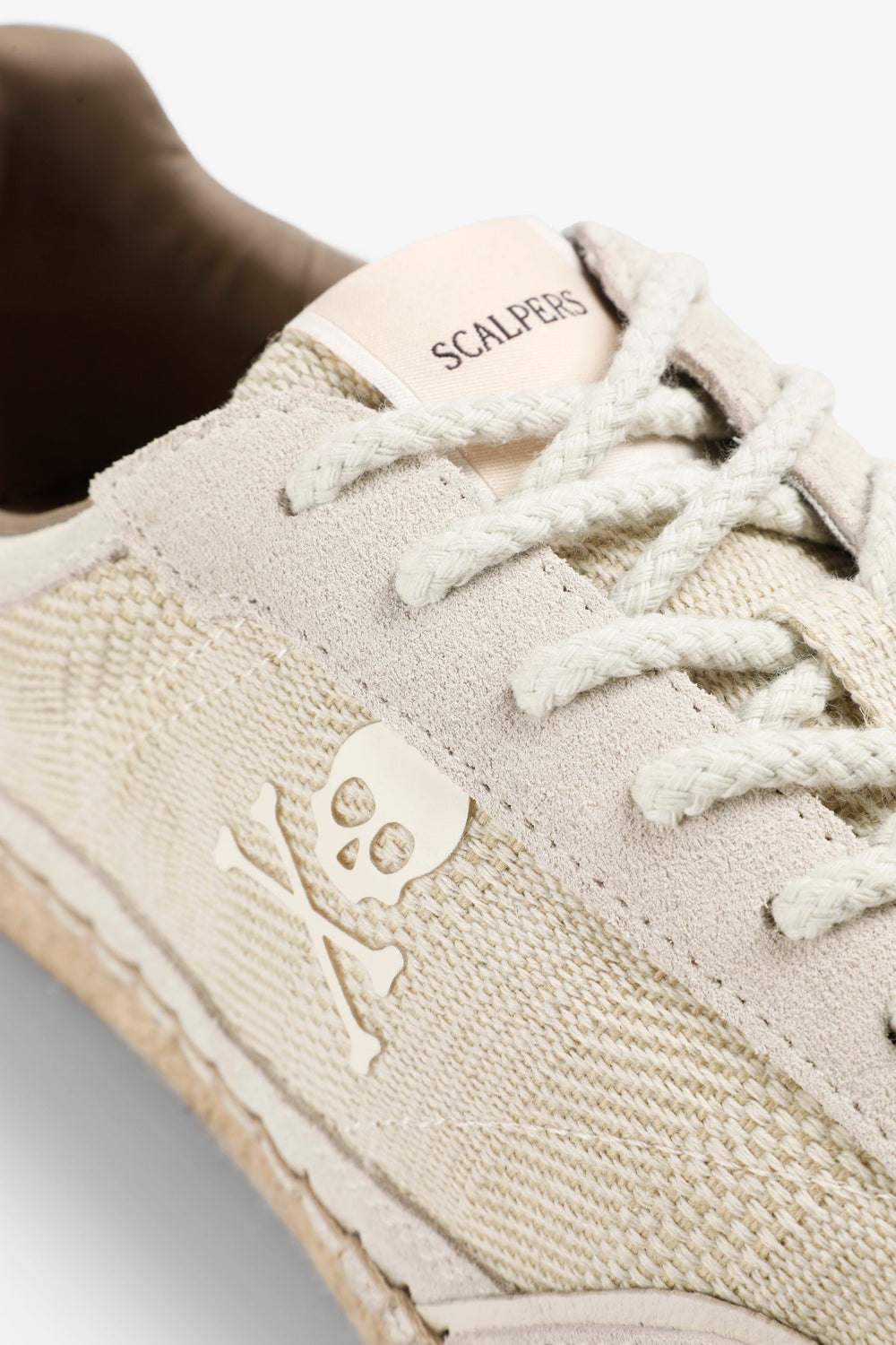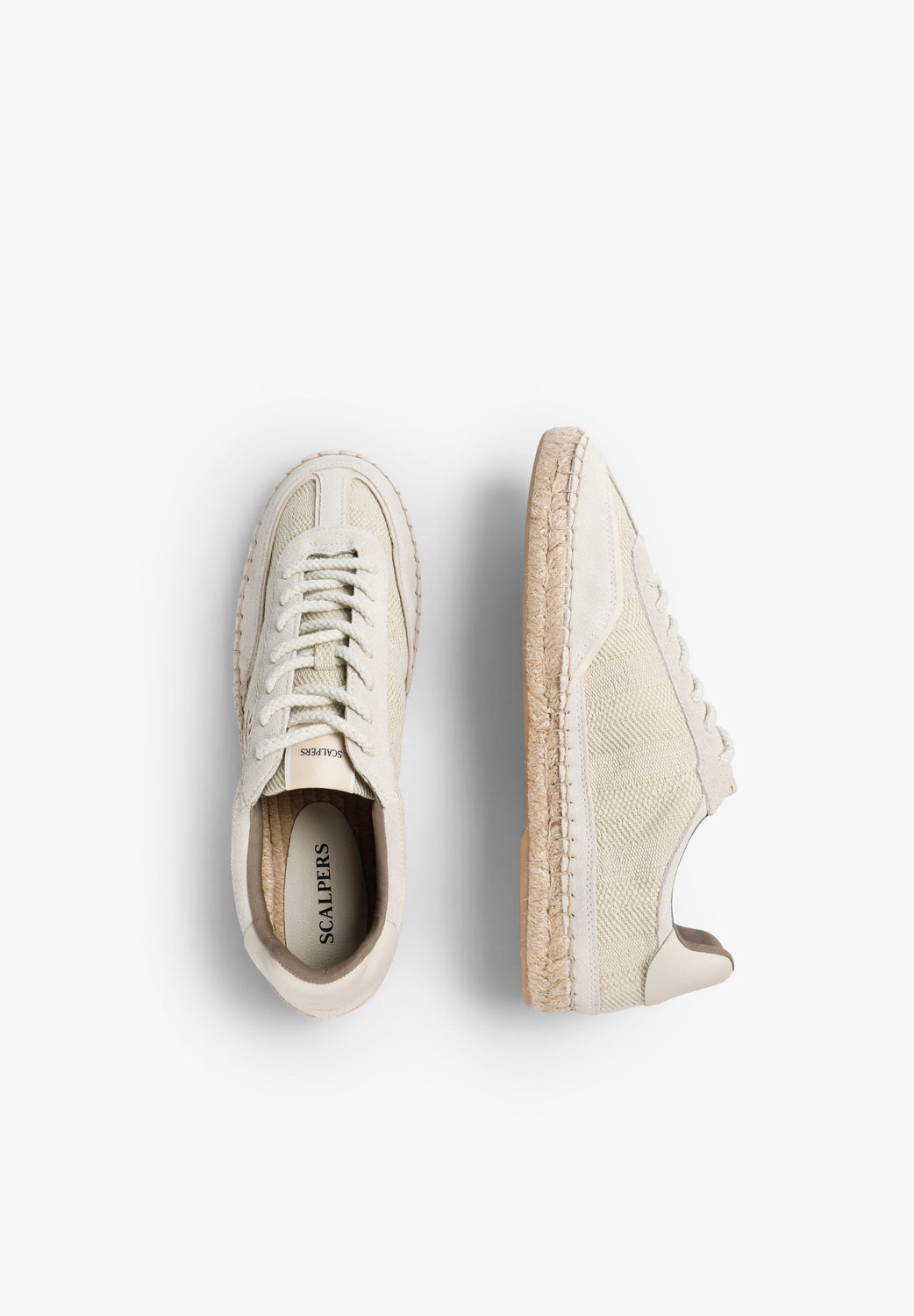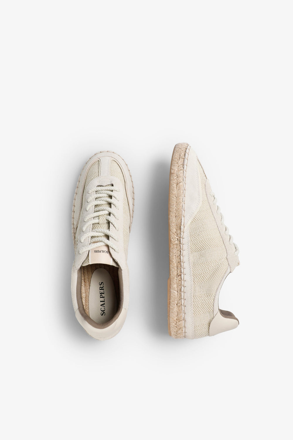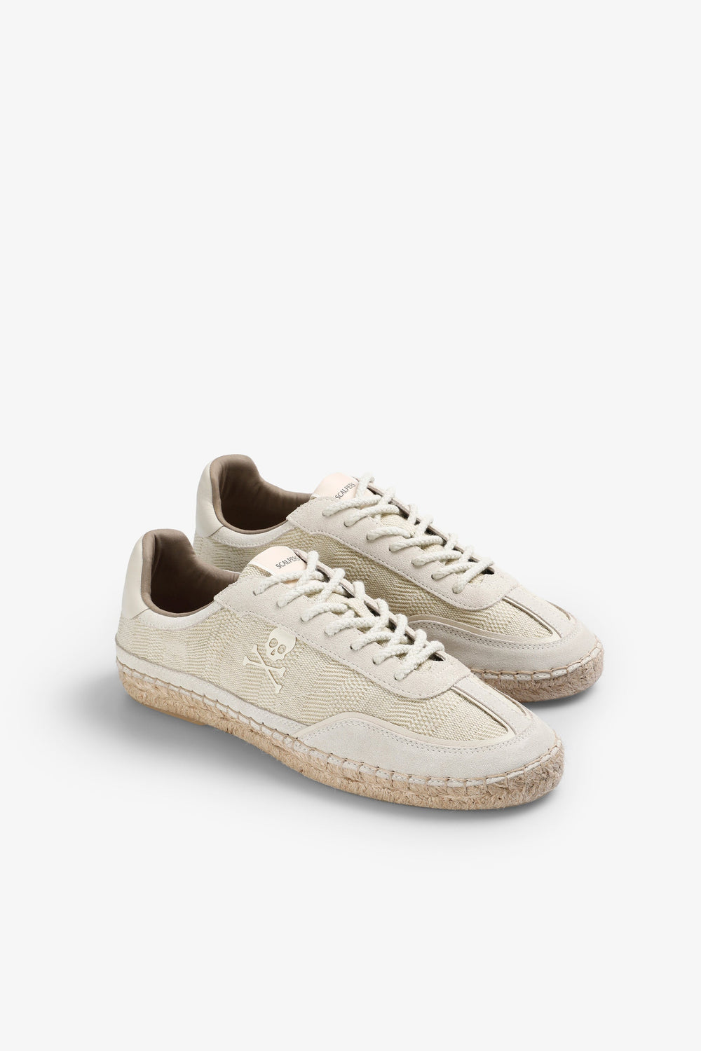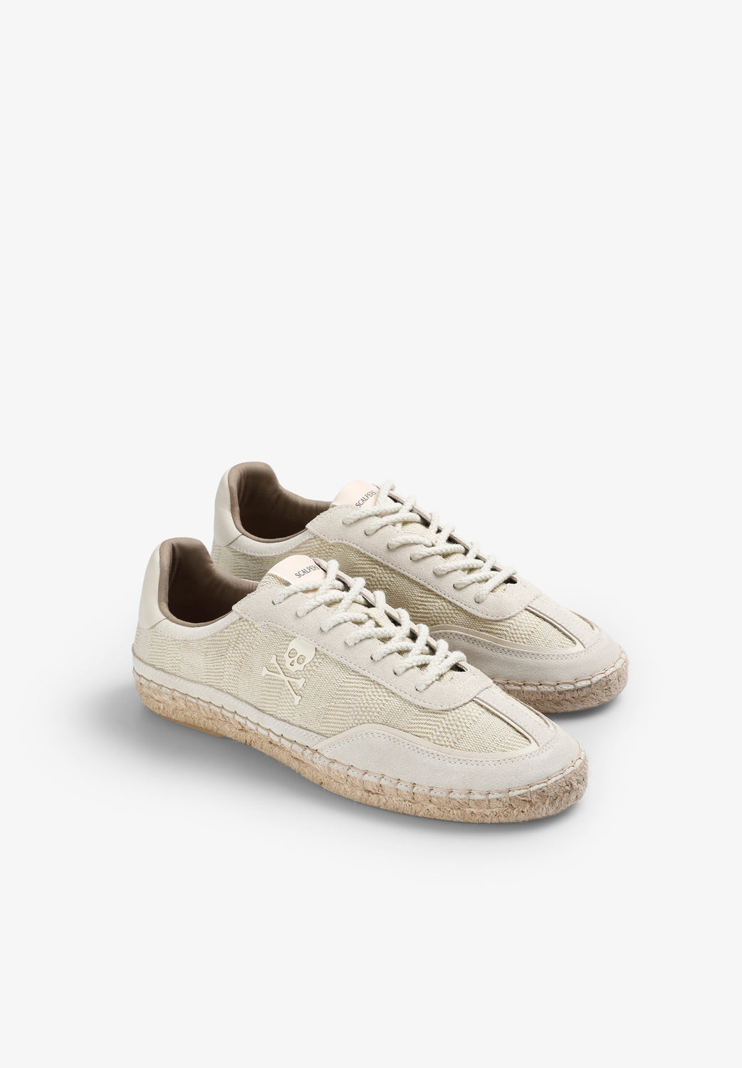 Espadrilles made of breathable fabric. Flat sole covered with yute. Embroidered logo detail on the side. Leather finish details. Lace-up fastening.