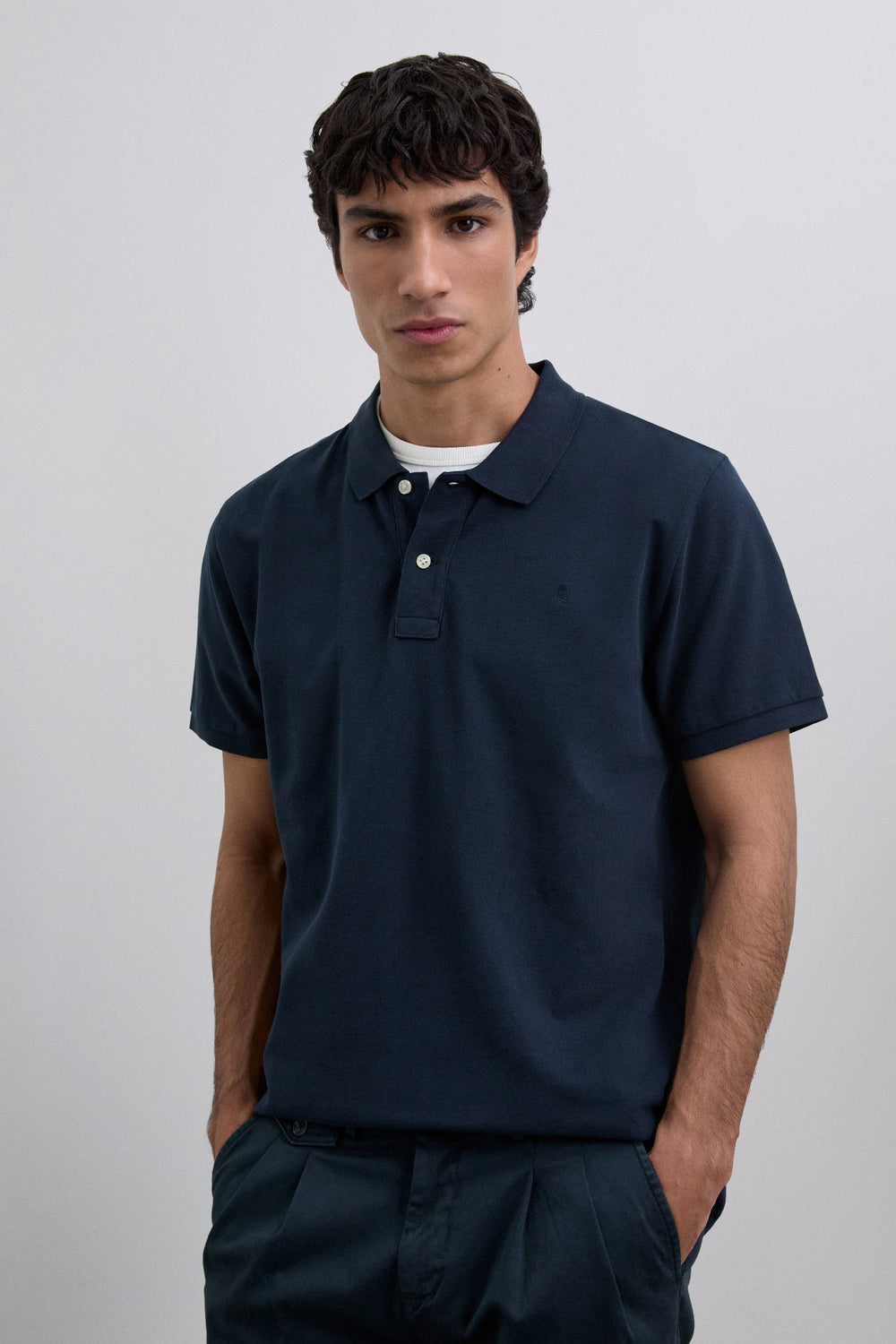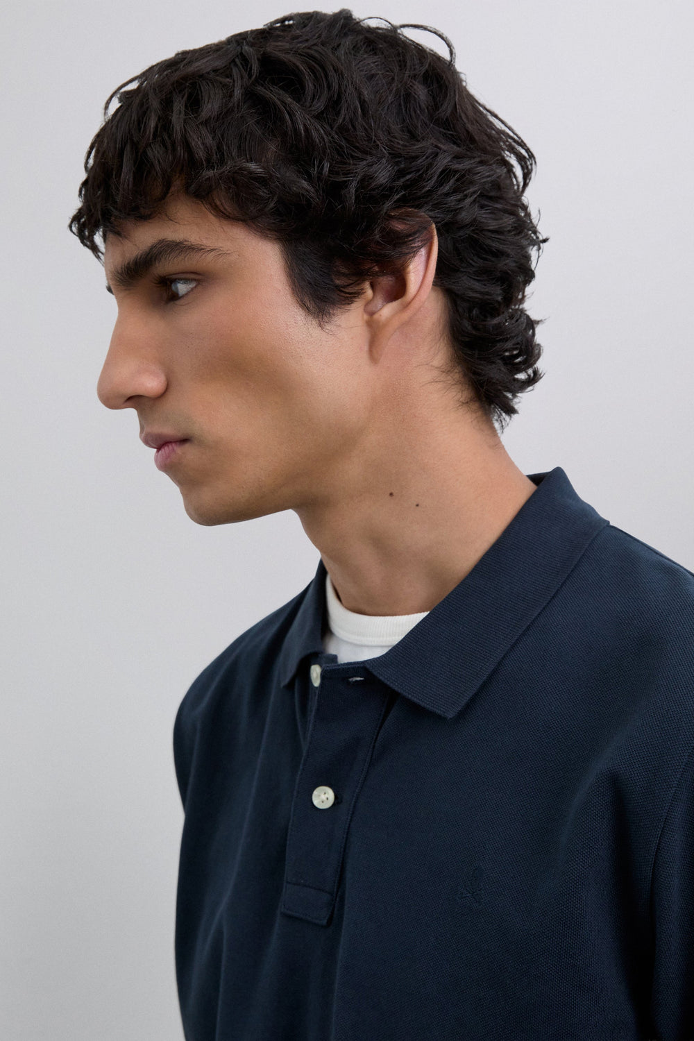 Basic polo shirt made of 100% BCI cotton. Regular fit, classic collar and button fastening. Short sleeves and matching embroidered skull.
