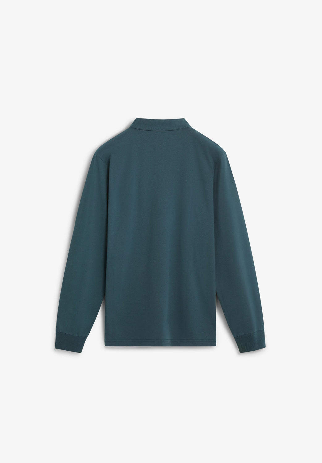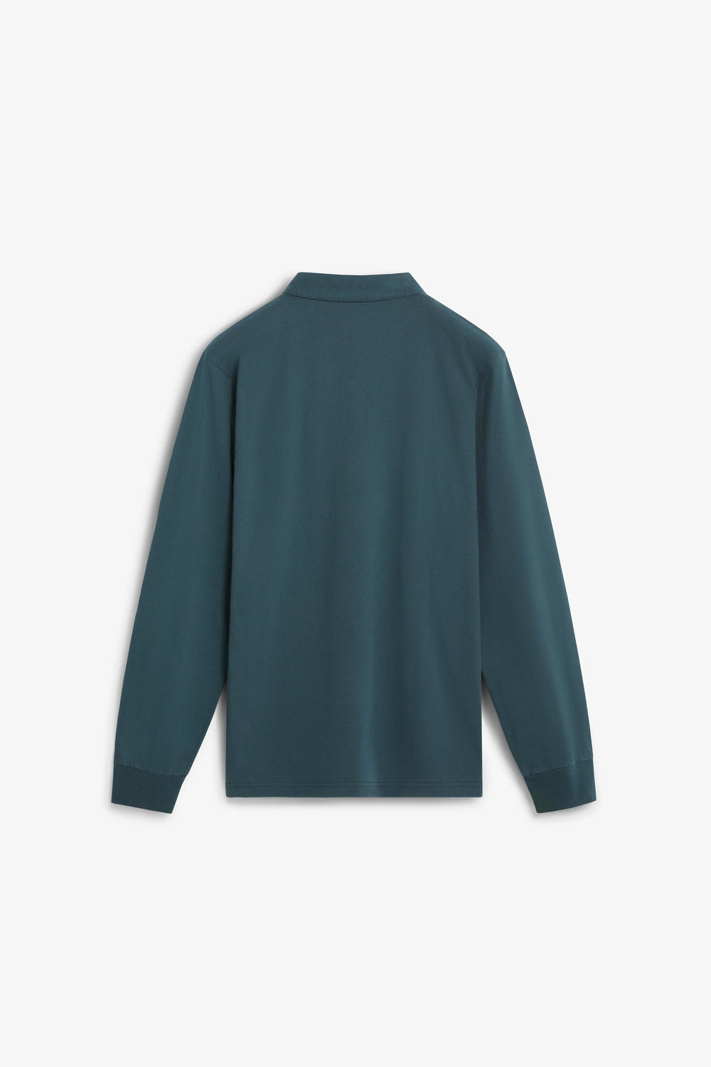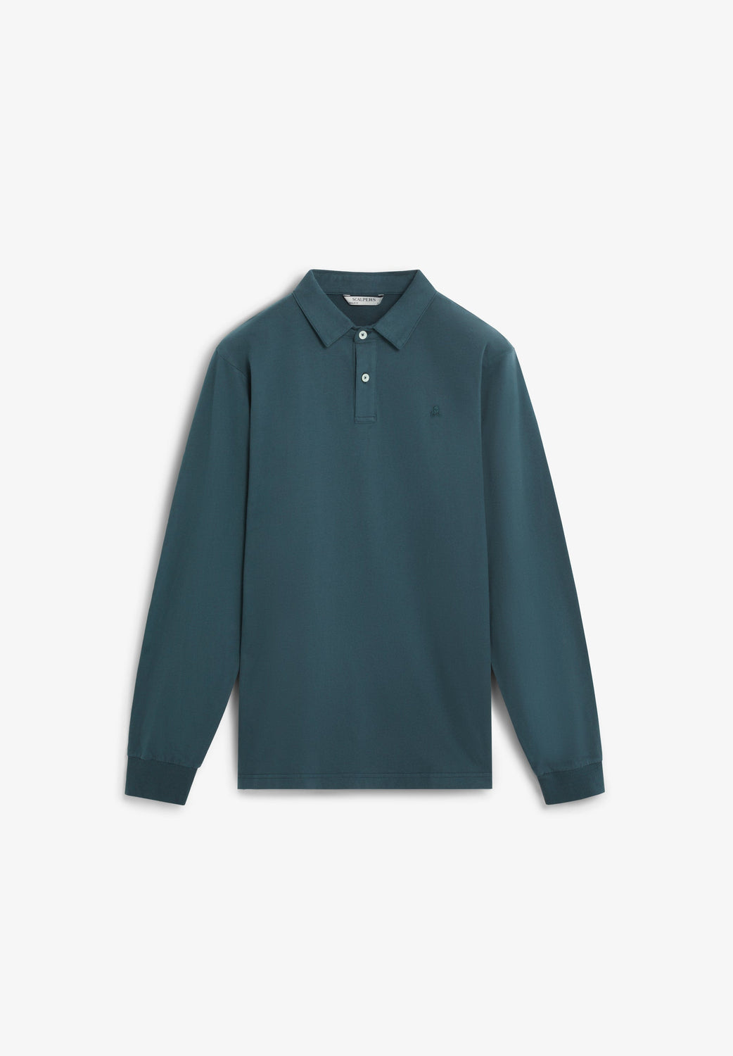 Long sleeve polo shirt made of 100% BCI cotton. Matching embroidered skull detail on the chest. Shirt collar. Front button fastening.