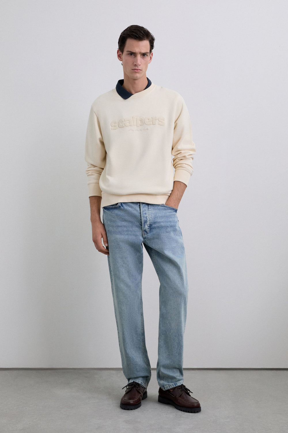 Sweatshirt made of 100% BCI cotton. Regular fit, round neck and long sleeves with ribbed cuffs and belt. Embossed logo on the chest.