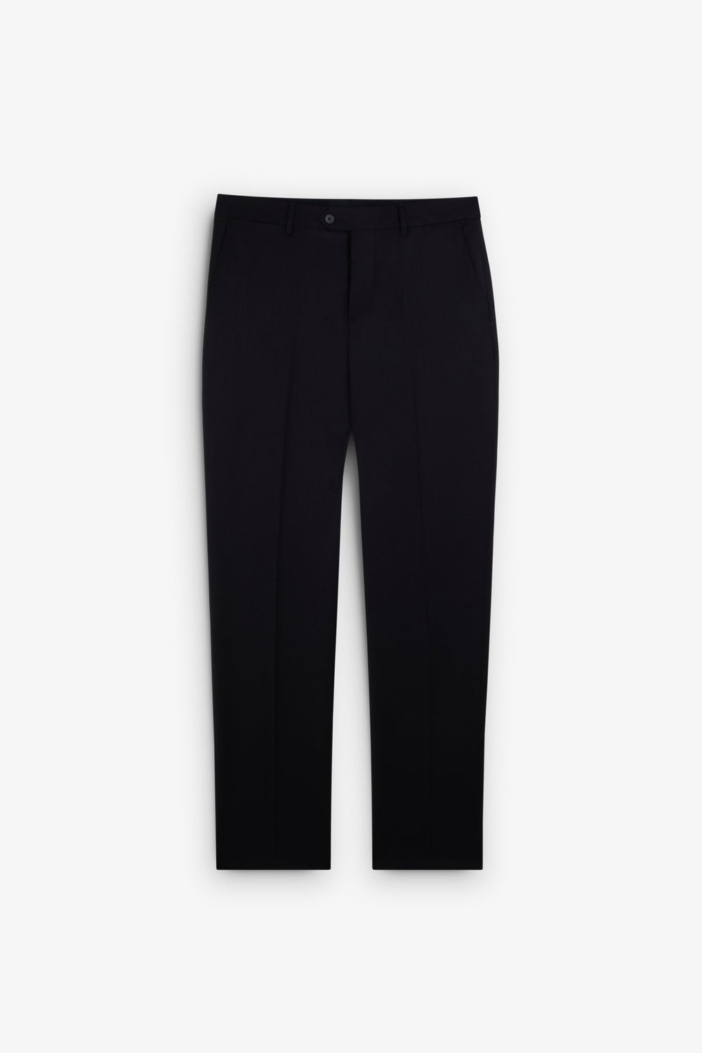 Pantalón de vestir con pinzas confeccionado en mezcla de lana ligeramente elástica. Cierre de cremallera oculta y botón en cintura prolongada con trabillas. Bolsillos inclinados delanteros y traseros de vivo con botón.
