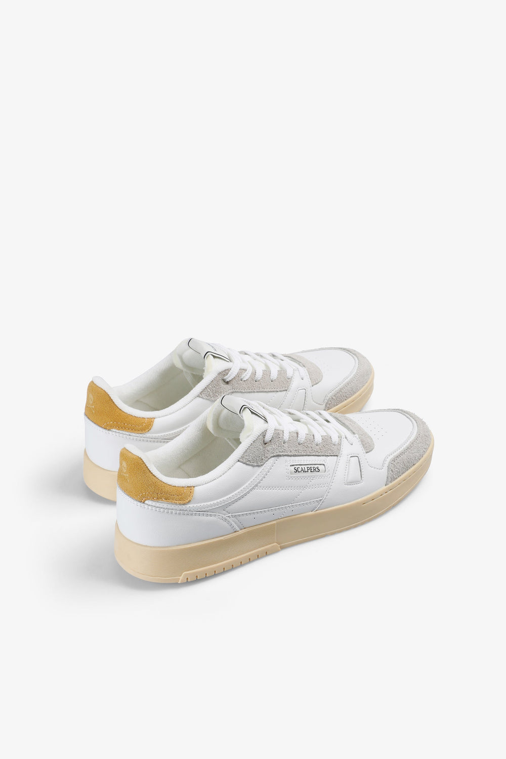 Leather sneakers. Contrast TPR sole. Contrast heel detail and side logo. Logo label detail on tongue.