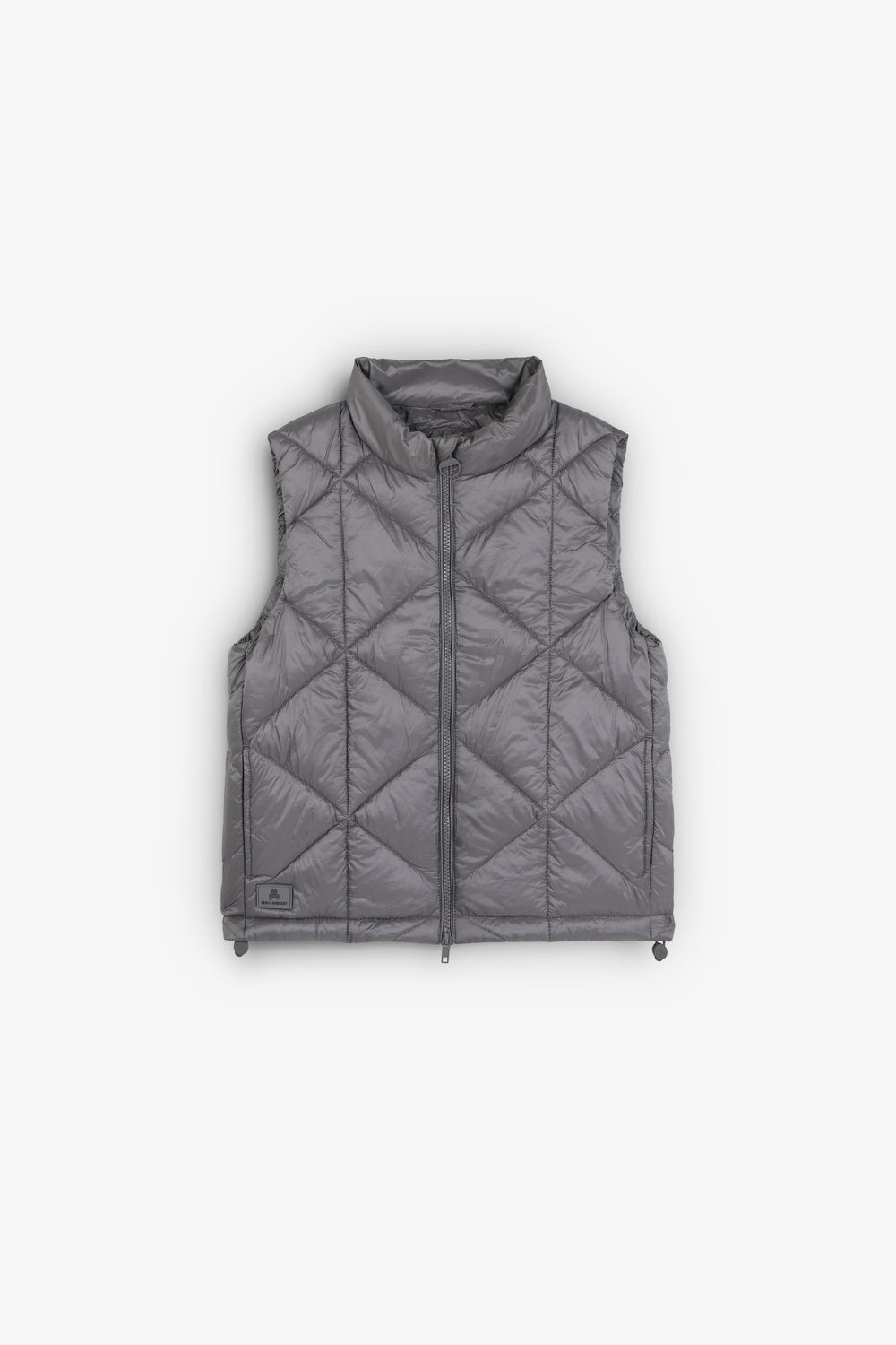 Puffer vest with skull detail. Regular fit. High collar. Double slider zip fastening. Side pockets. Rubber logo patch detail and skull on the belt. Logo print on the back. Adjustable waist.