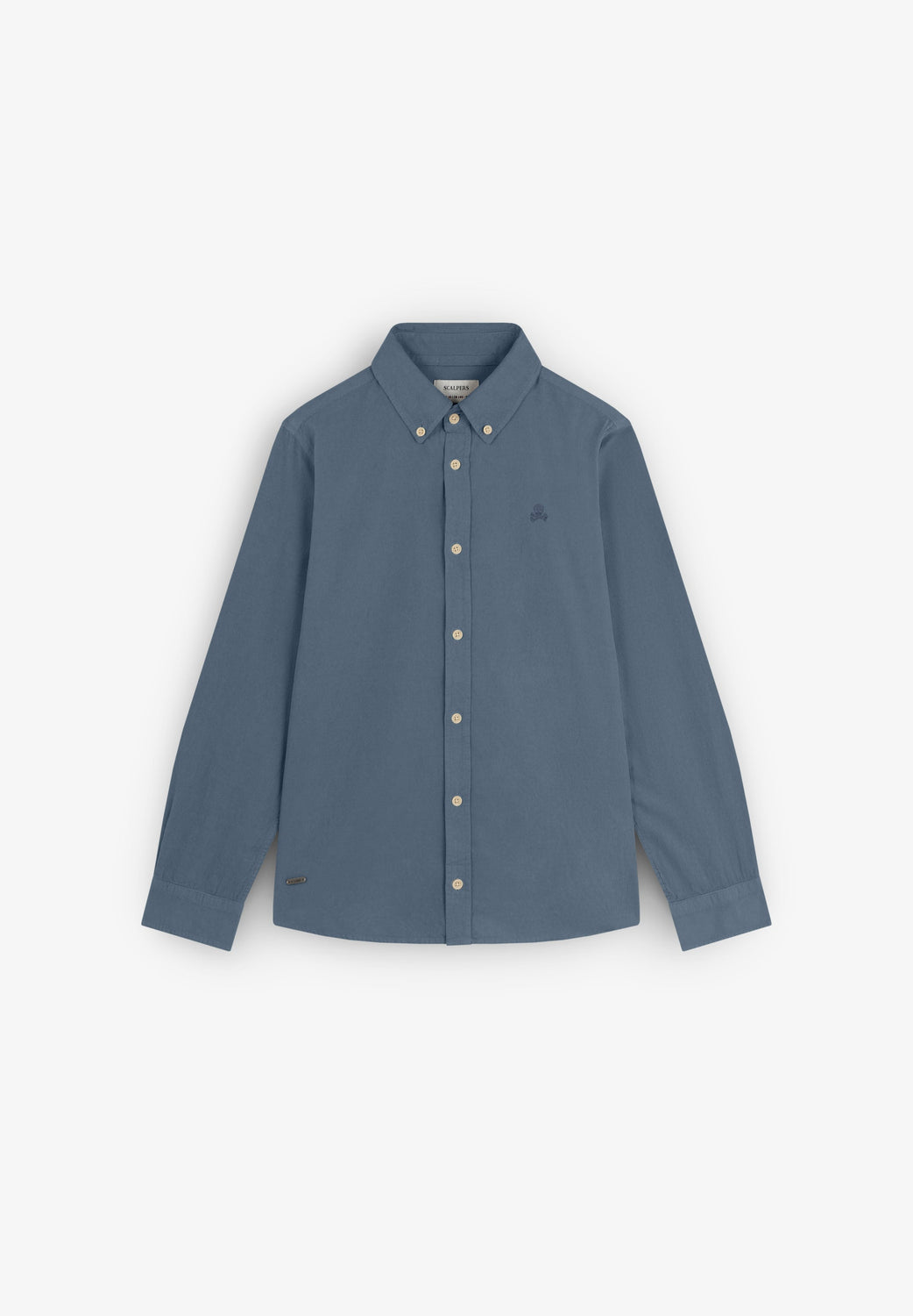 Oxford shirt made of 100% BCI cotton. Regular Fit. Classic collar and button fastening. Long sleeves with buttoned cuffs. Embroidered contrast skull on the chest. Detail of metallic lower front label with logo.