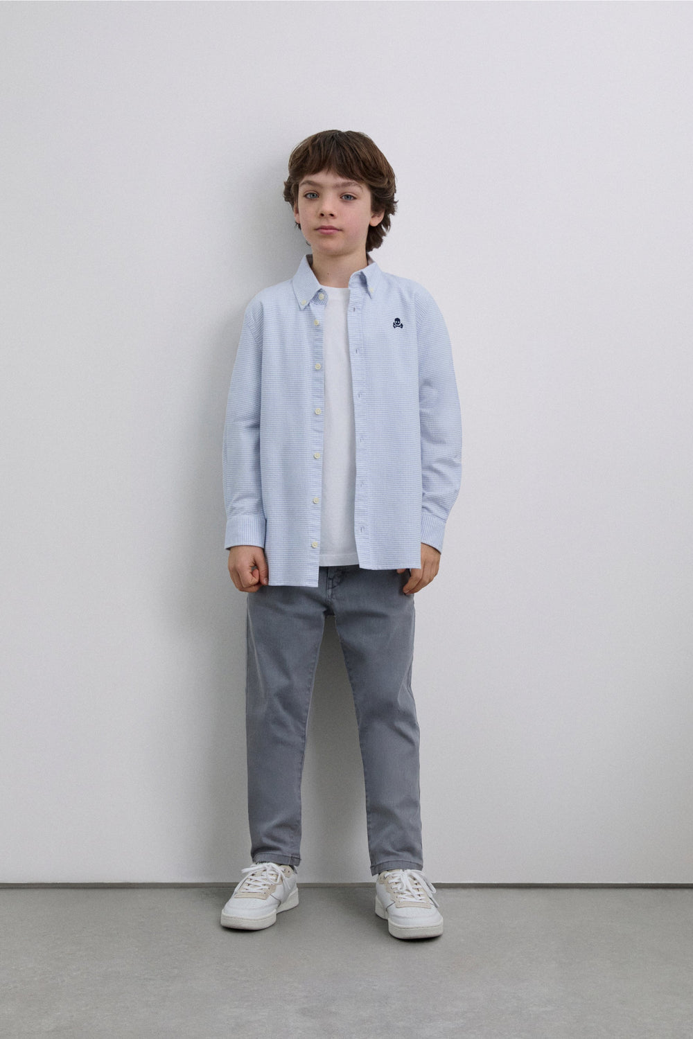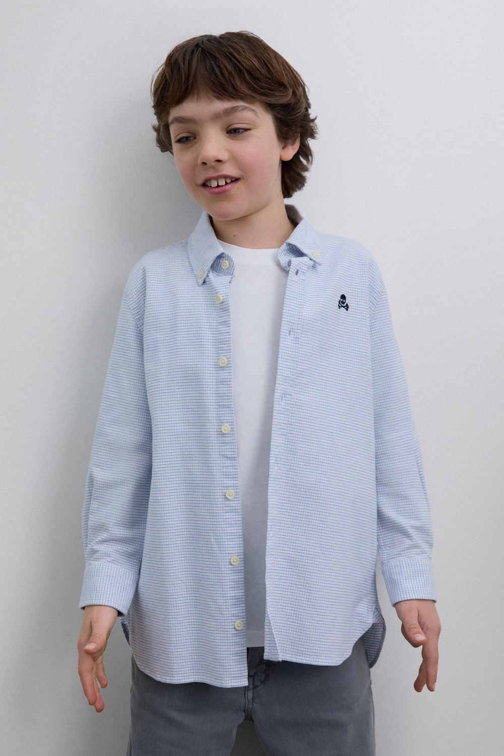Oxford shirt made of 100% BCI cotton. Regular Fit. Classic collar and button fastening. Long sleeves with buttoned cuffs. Embroidered contrast skull on the chest.