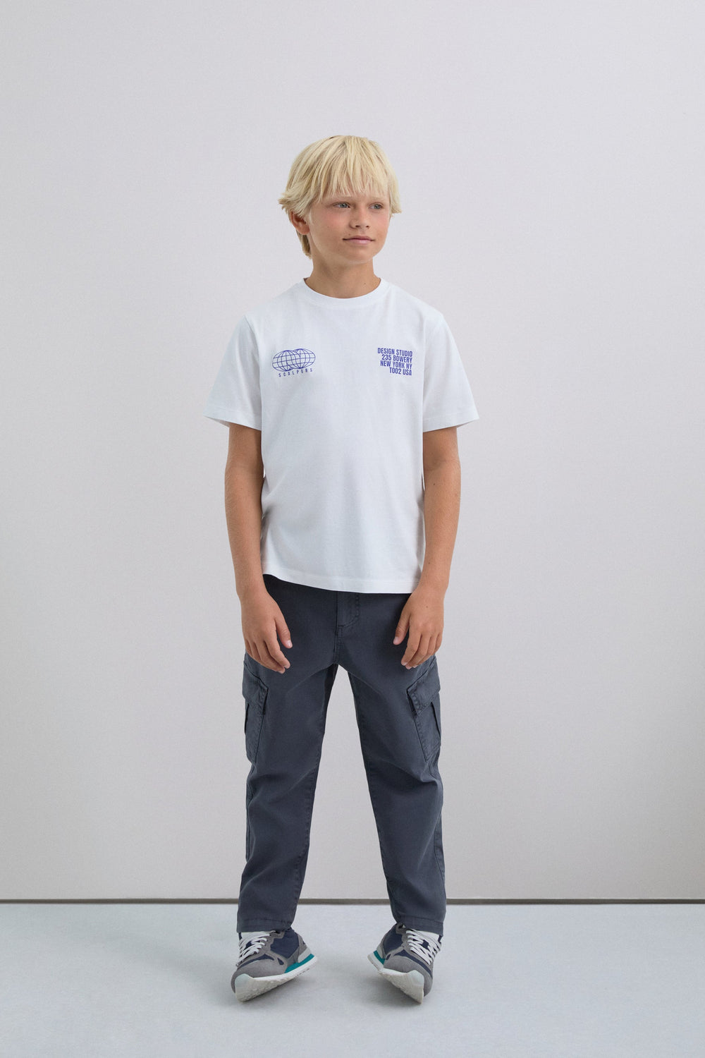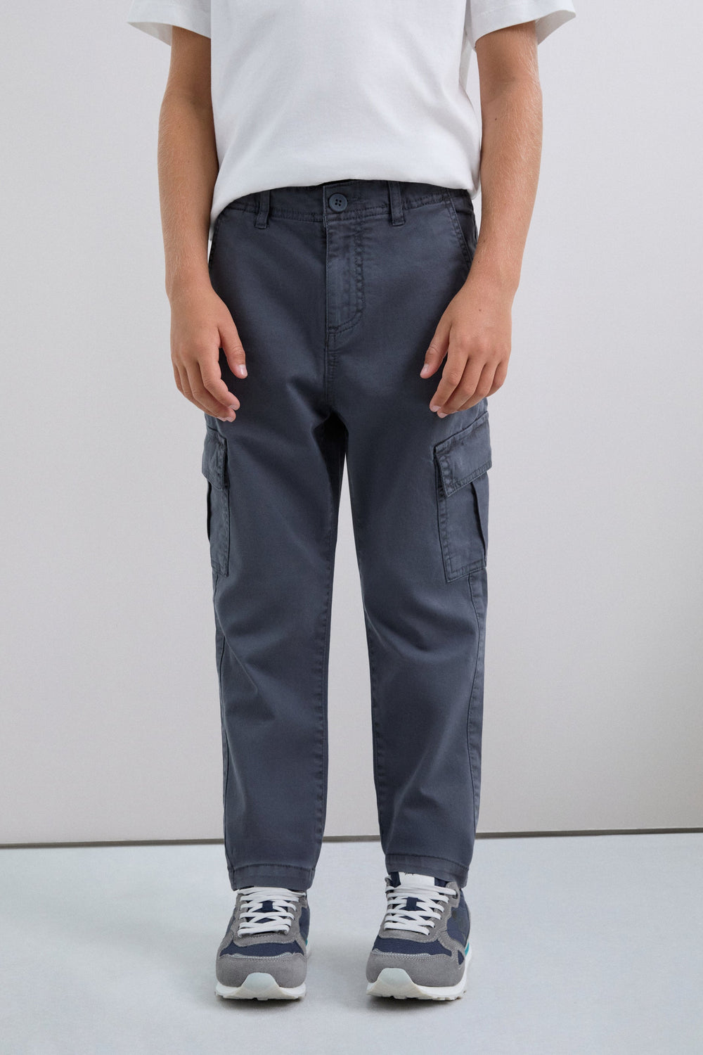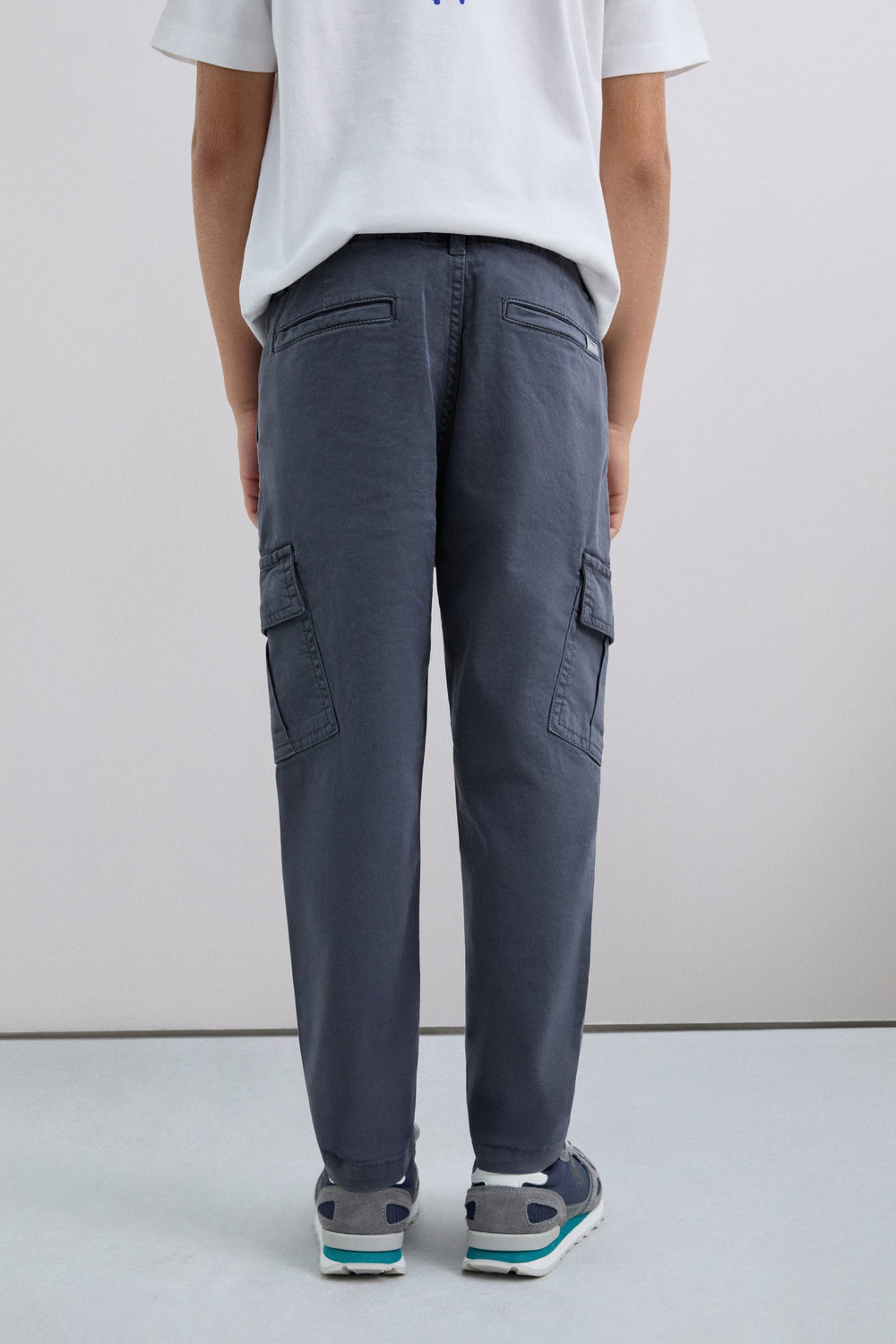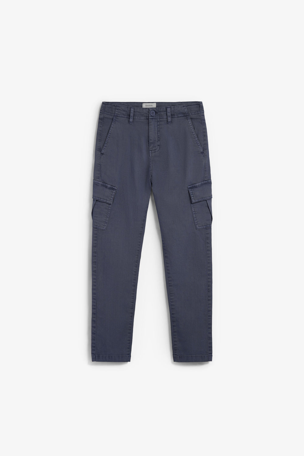 Cargo trousers made of slightly stretch BCI cotton. Regular fit, top button and zip fastening and side pockets. Belt loops at the waist and flap pockets on the leg.