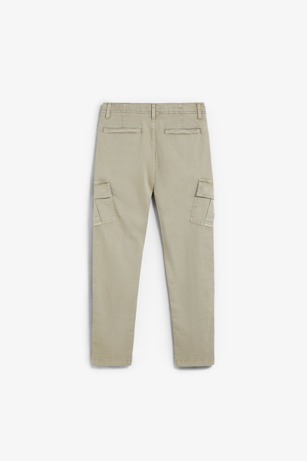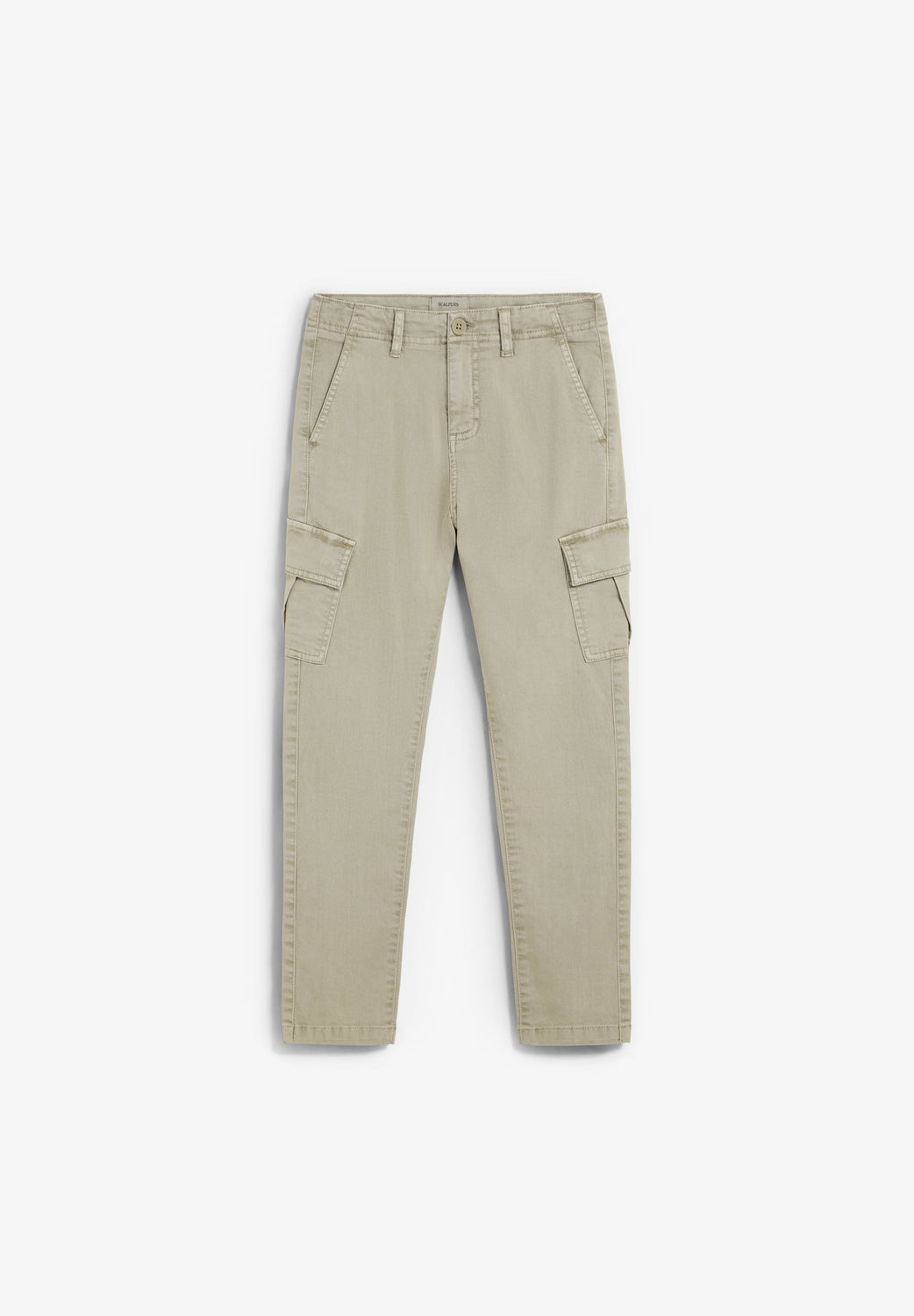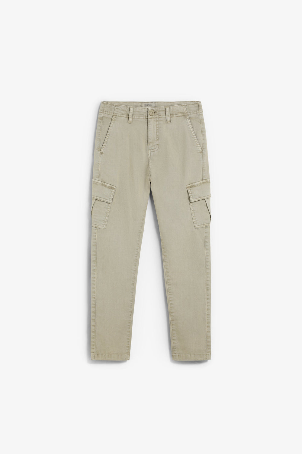 Cargo trousers made of slightly stretch BCI cotton. Regular fit, top button and zip fastening and side pockets. Belt loops at the waist and flap pockets on the leg.