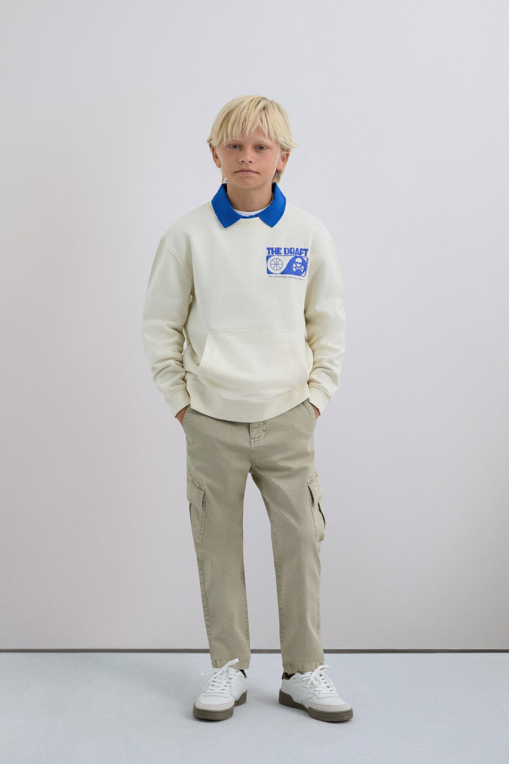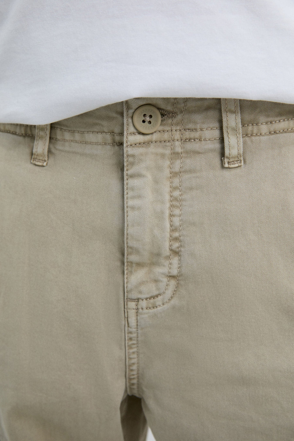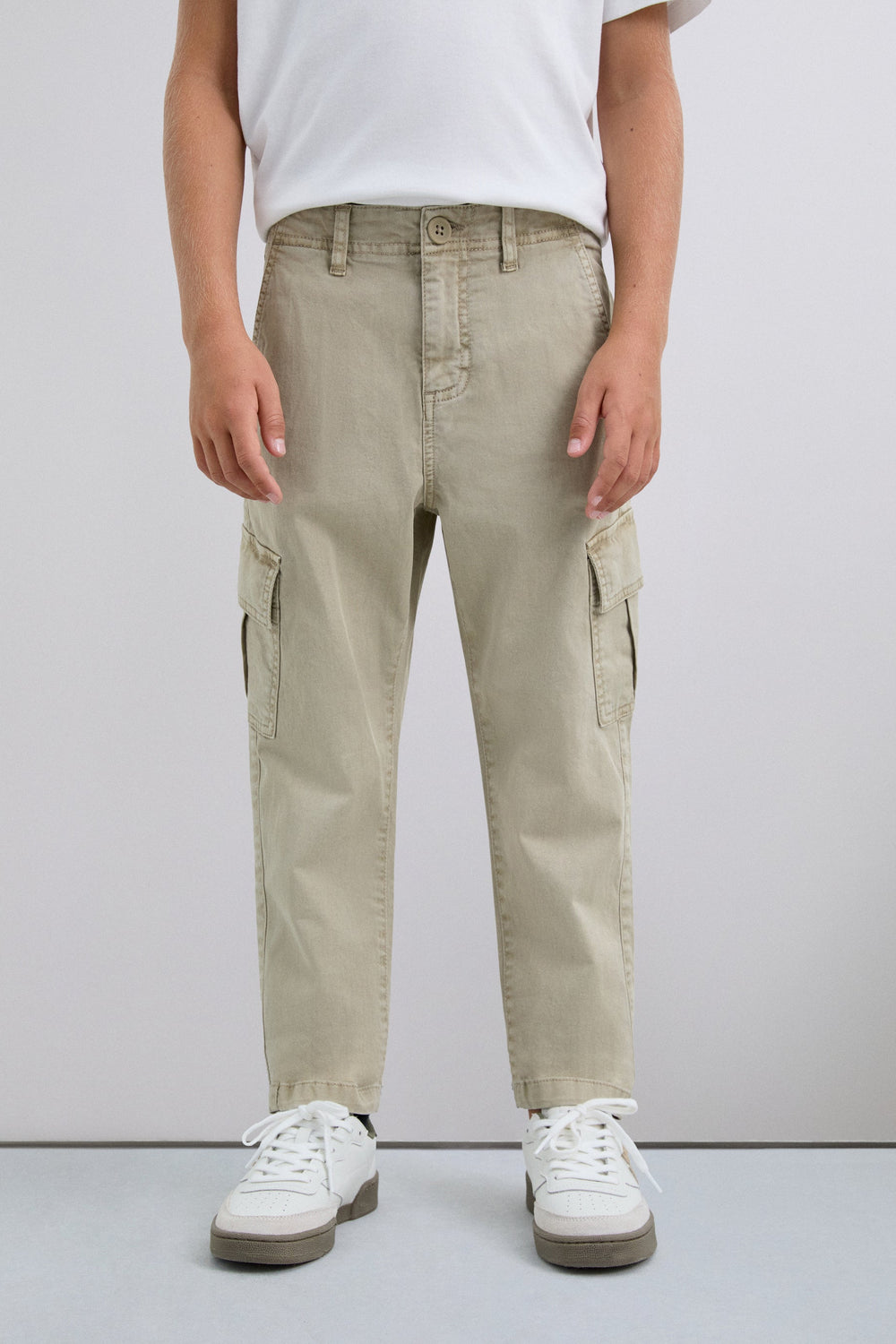 Cargo trousers made of slightly stretch BCI cotton. Regular fit, top button and zip fastening and side pockets. Belt loops at the waist and flap pockets on the leg.