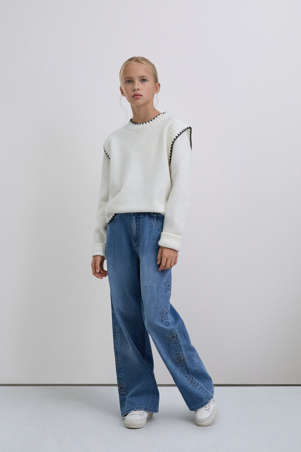 WIDE LEG TROUSERS WITH EMBROIDERED STARS