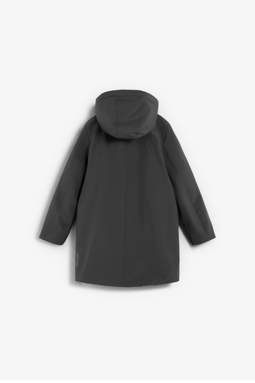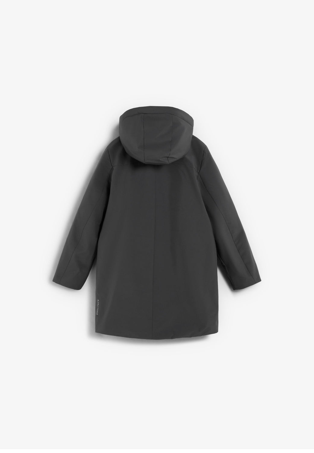 Long parka made of recycled technical fabric. Regular fit, hood and fastening with thermo-sealed zip and placket. Long sleeves and thermo-sealed zip pockets. Side rubberised patch.