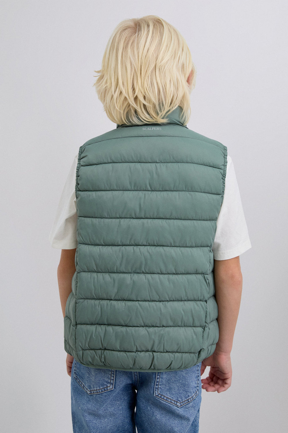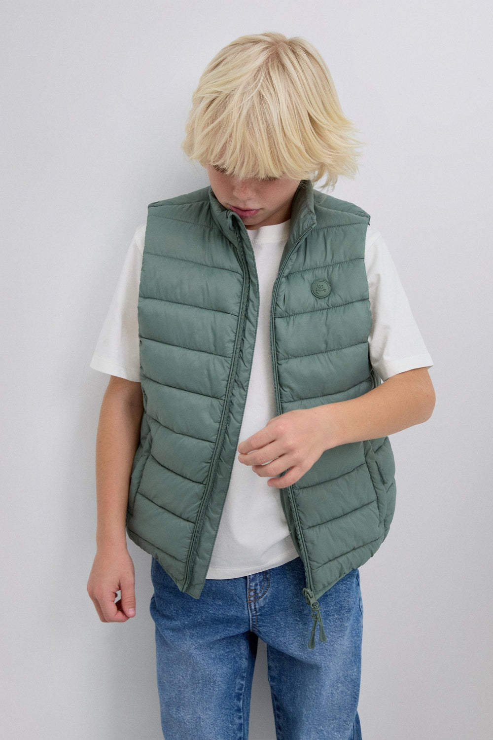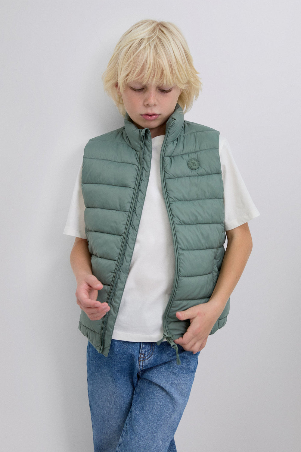 Quilted vest made of recycled polyester. Regular fit. High collar. Zip fastening and side pockets.