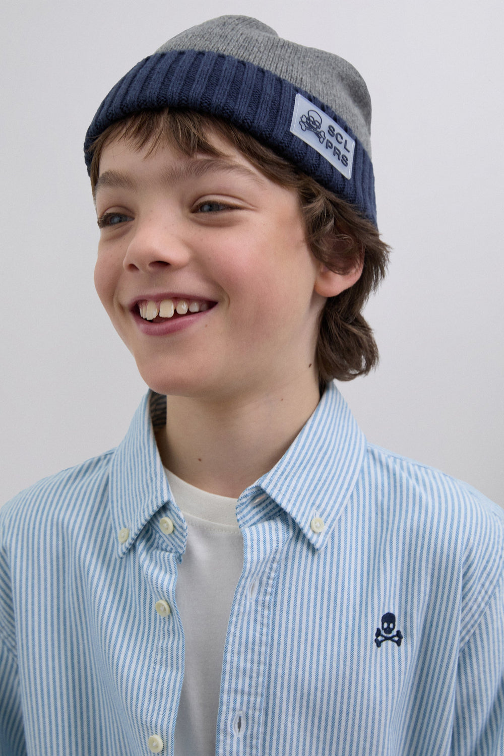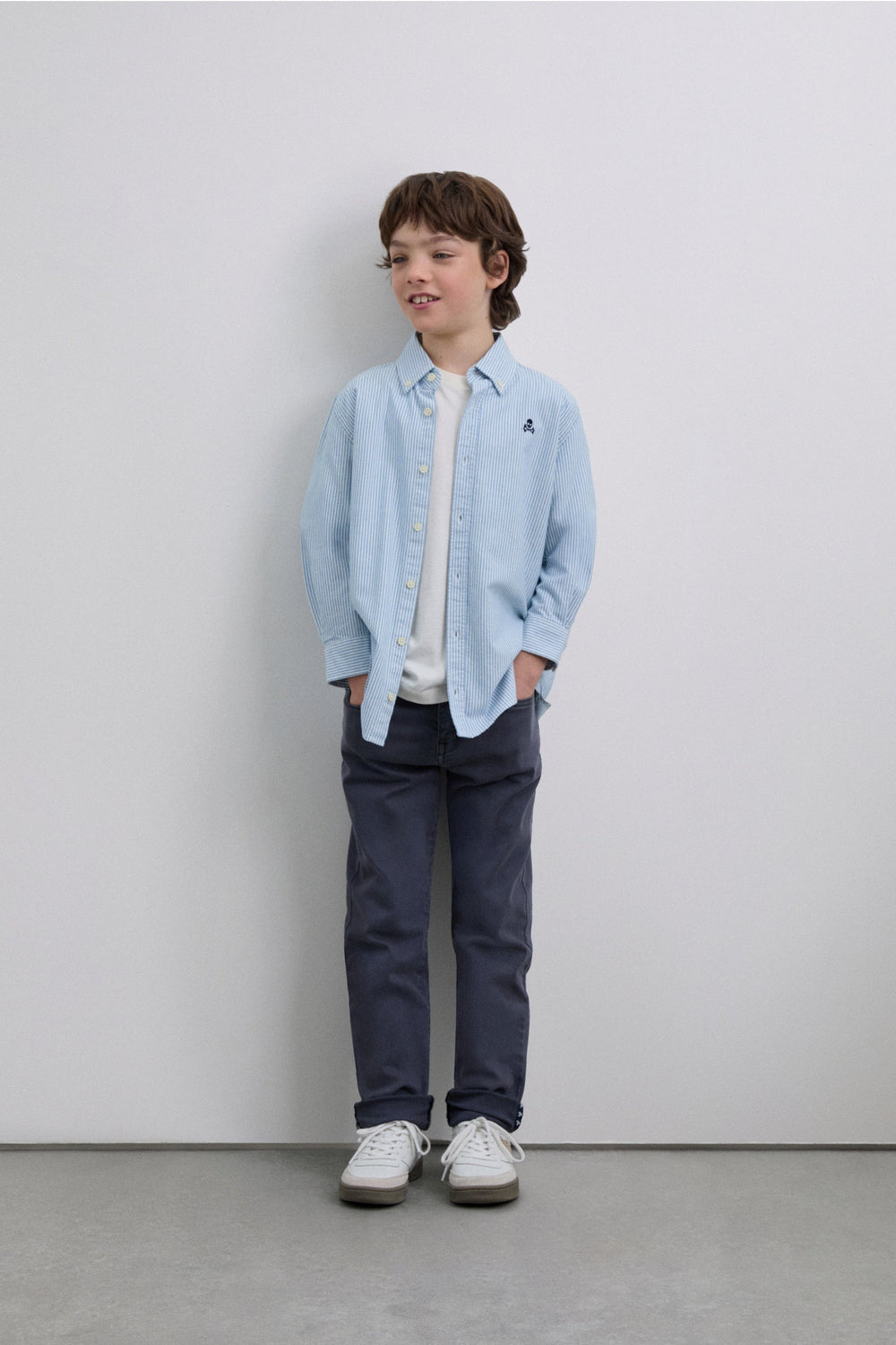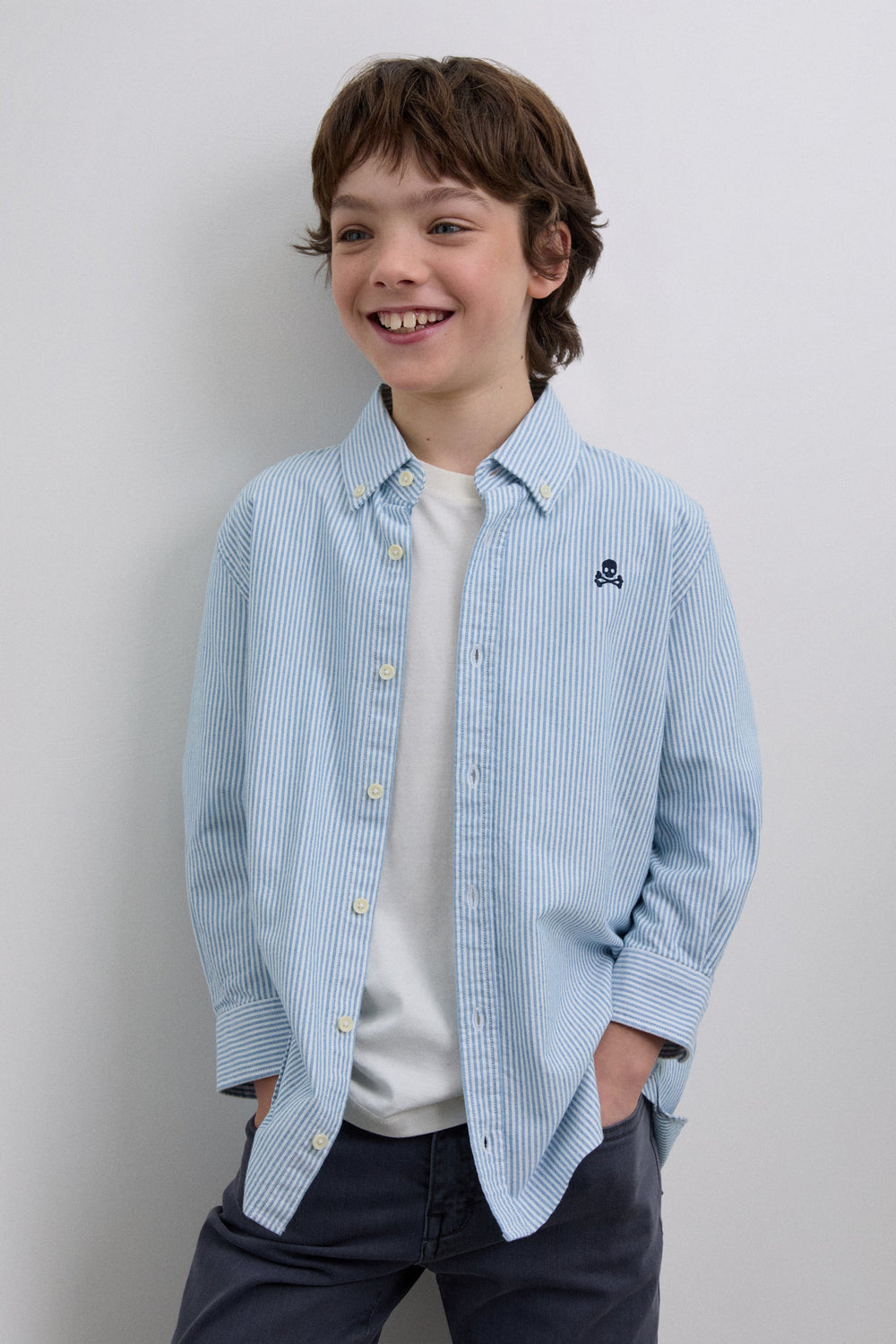 Striped shirt made of 100% BCI cotton. Classic collar, button fastening, regular fit, contrast skull on chest. Buttoned cuffs.