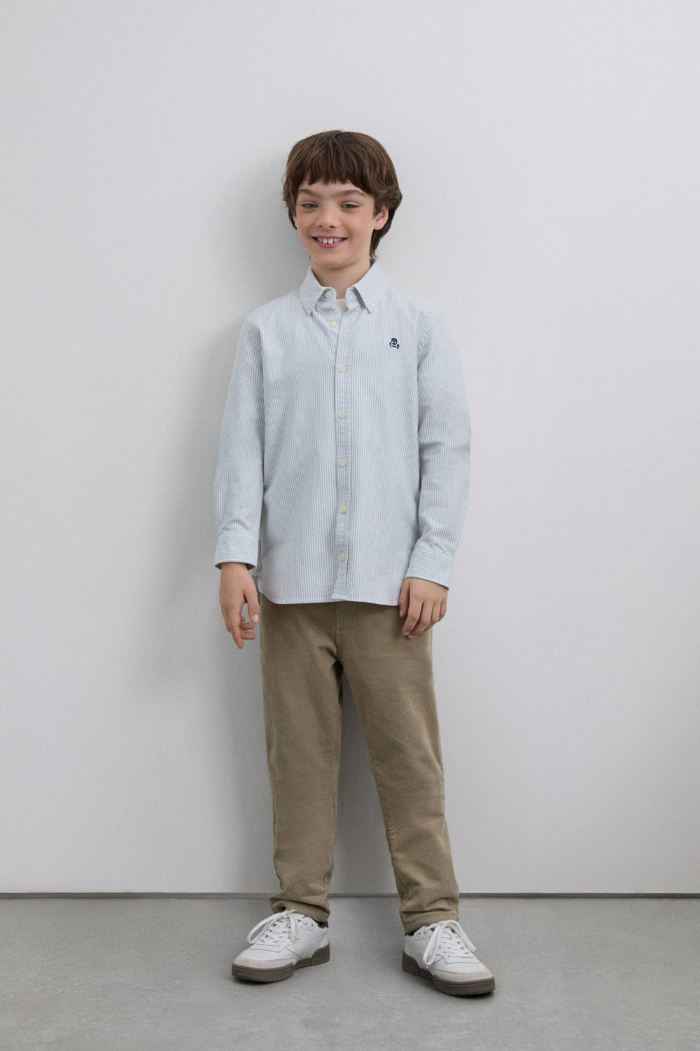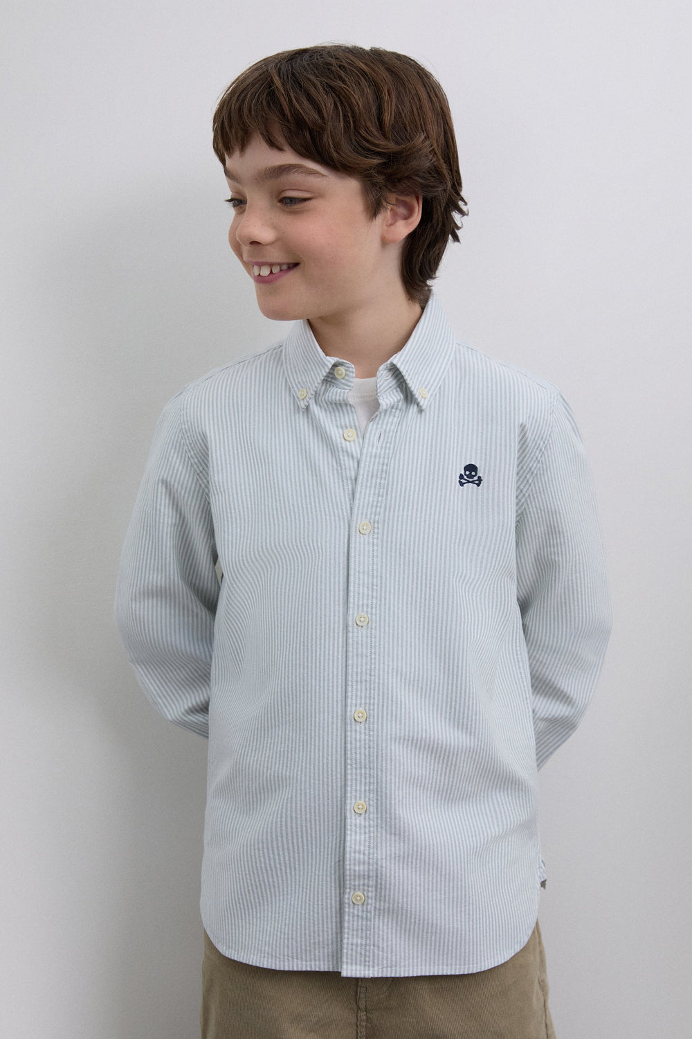 Striped shirt made of 100% BCI cotton. Classic collar, button fastening, regular fit, contrast skull on chest. Buttoned cuffs.