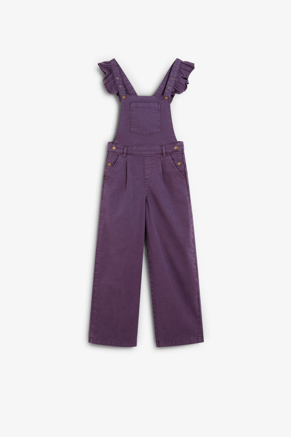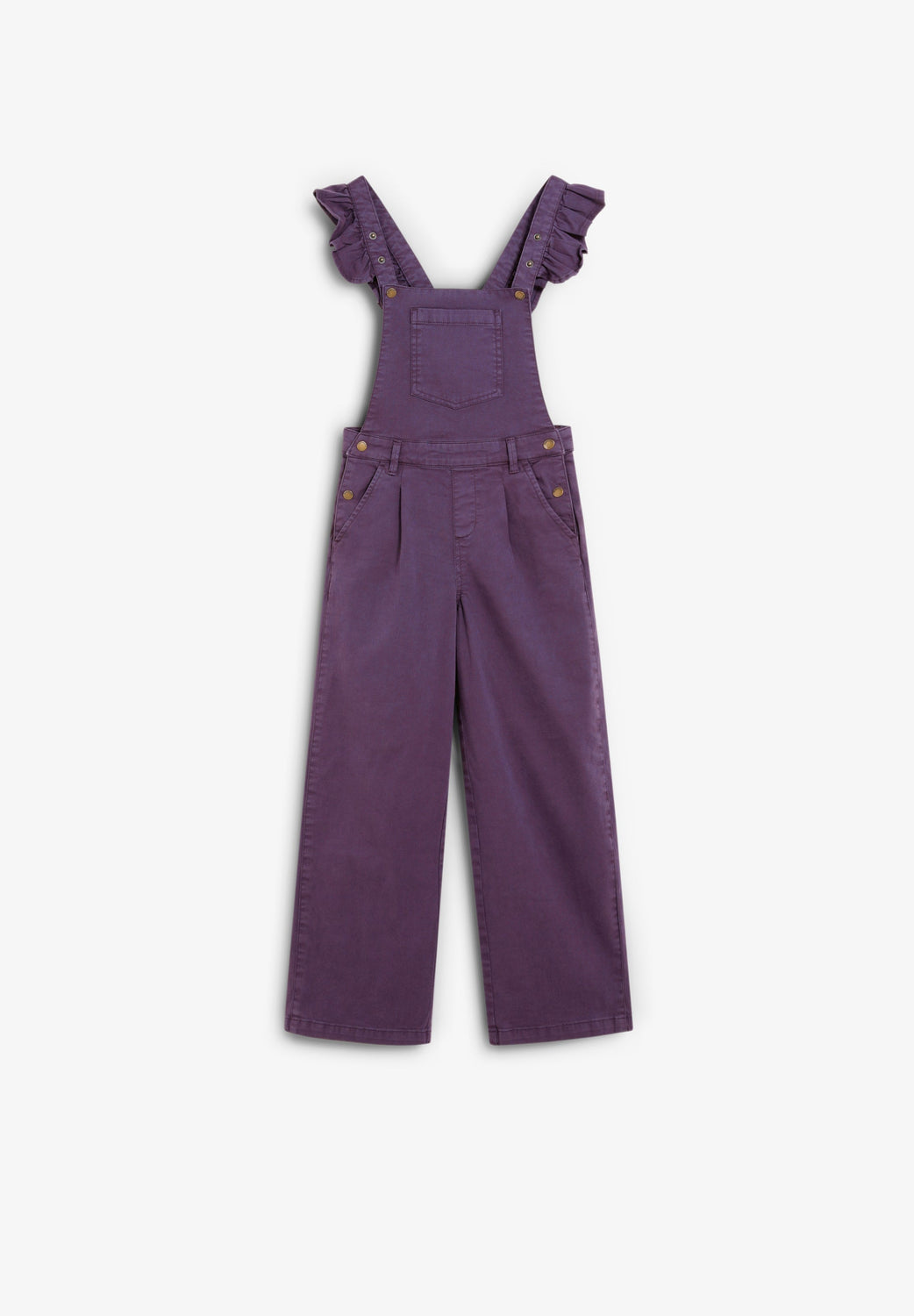 Dungarees made of slightly stretchy cotton. Regular fit with a culotte cut, side button fastenings. Straps with crossed frill on the back and patch pocket on the chest. Side slant pockets and back patch pockets