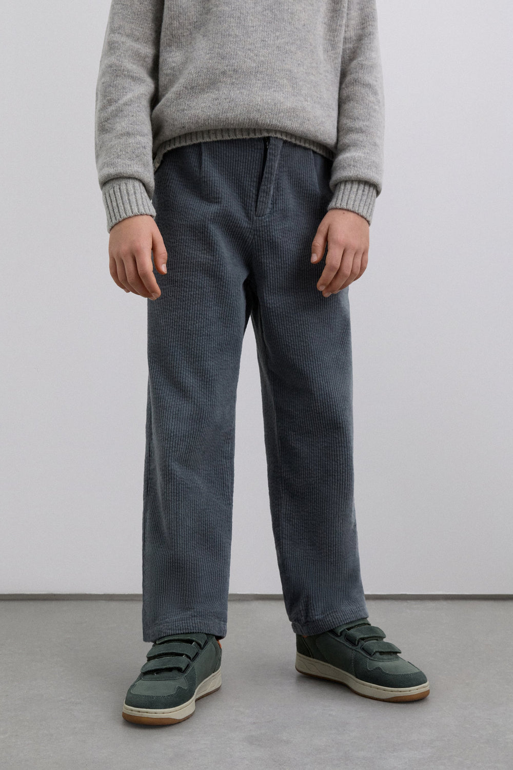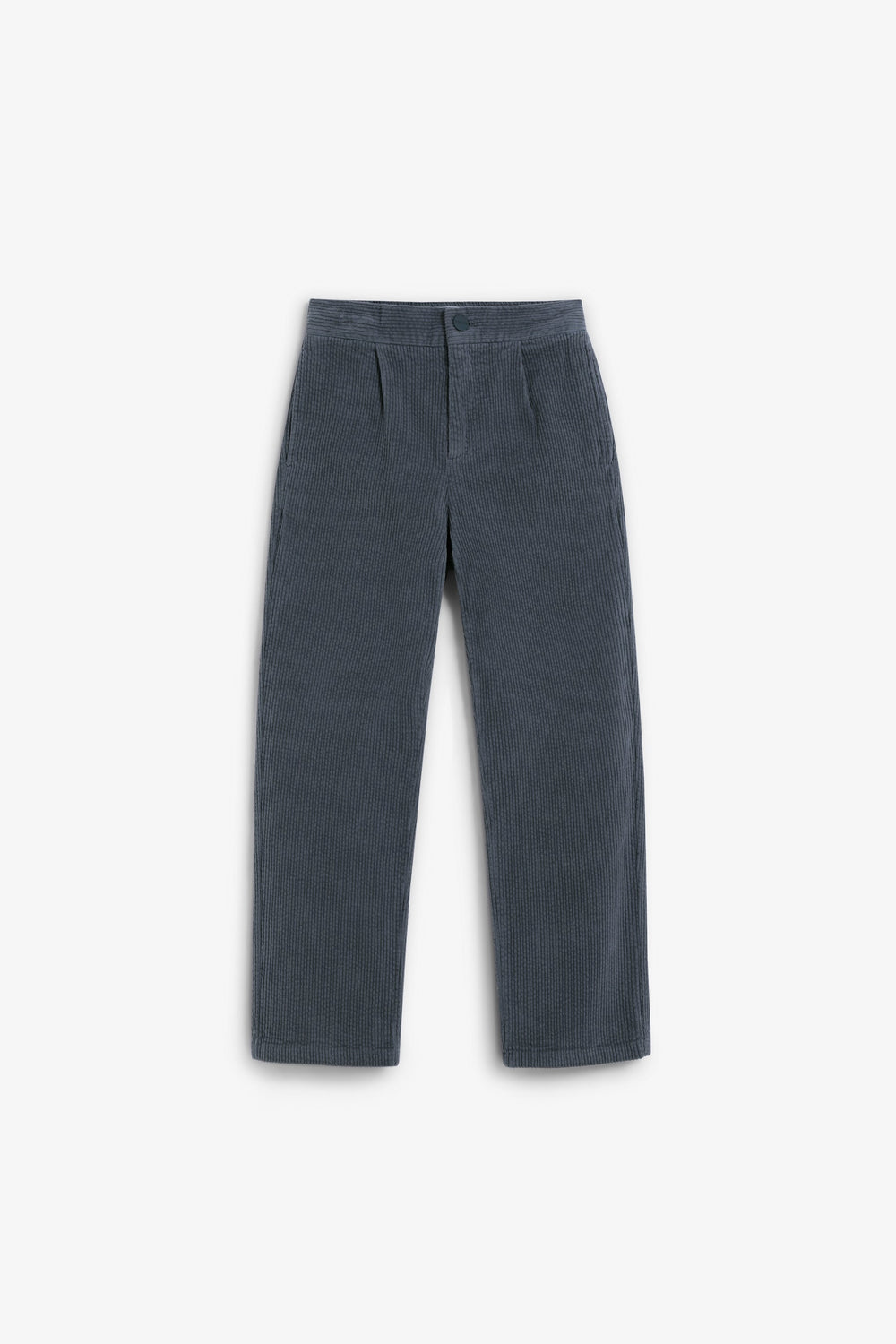 Straight corduroy trousers made of a slightly stretch cotton blend fabric Button closure. Front and back slanted pockets. Back label detail with logo.