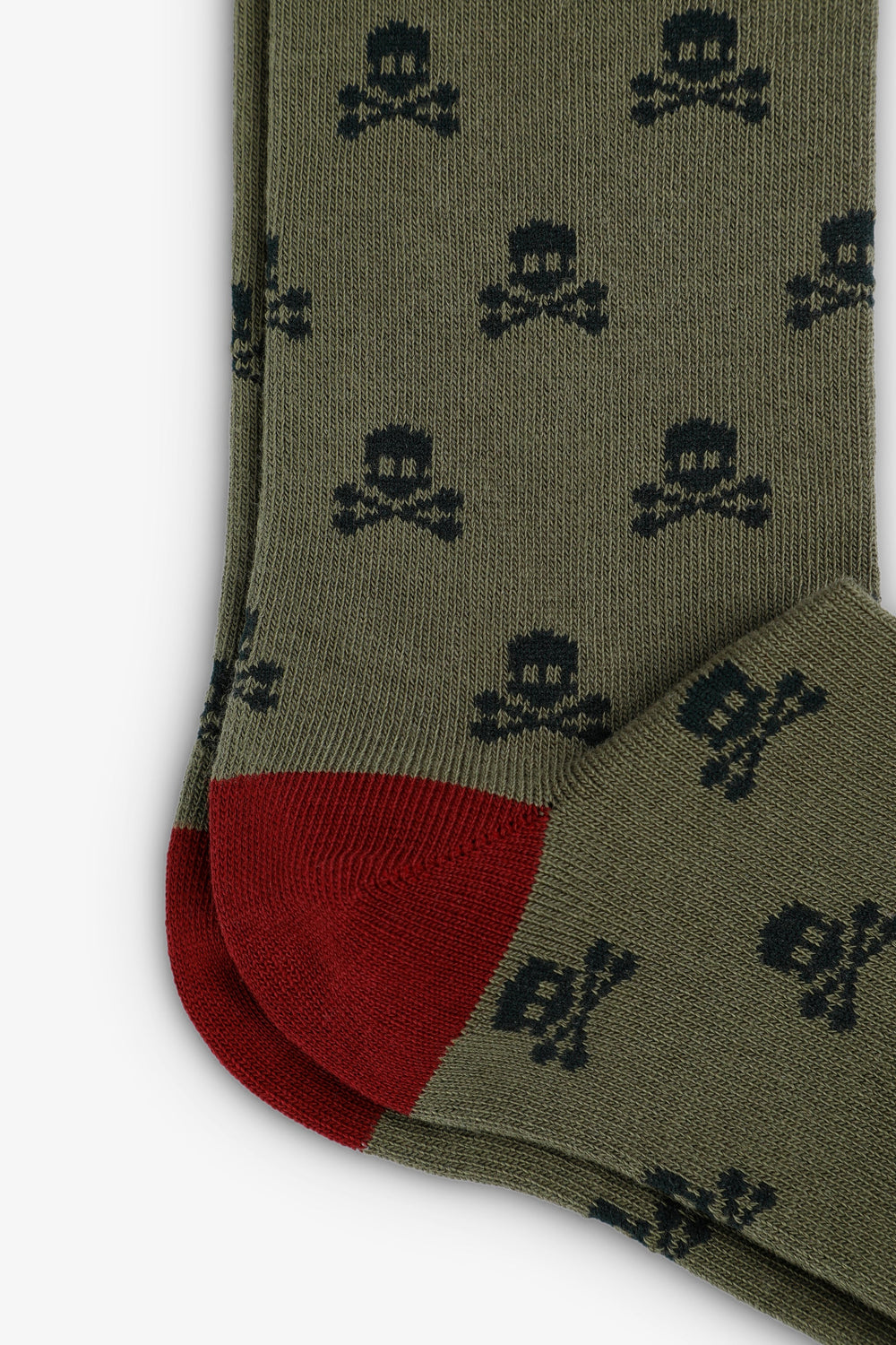 Long socks in a cotton blend. Skull print. Contrast heel and toe. Contrast logo detail.