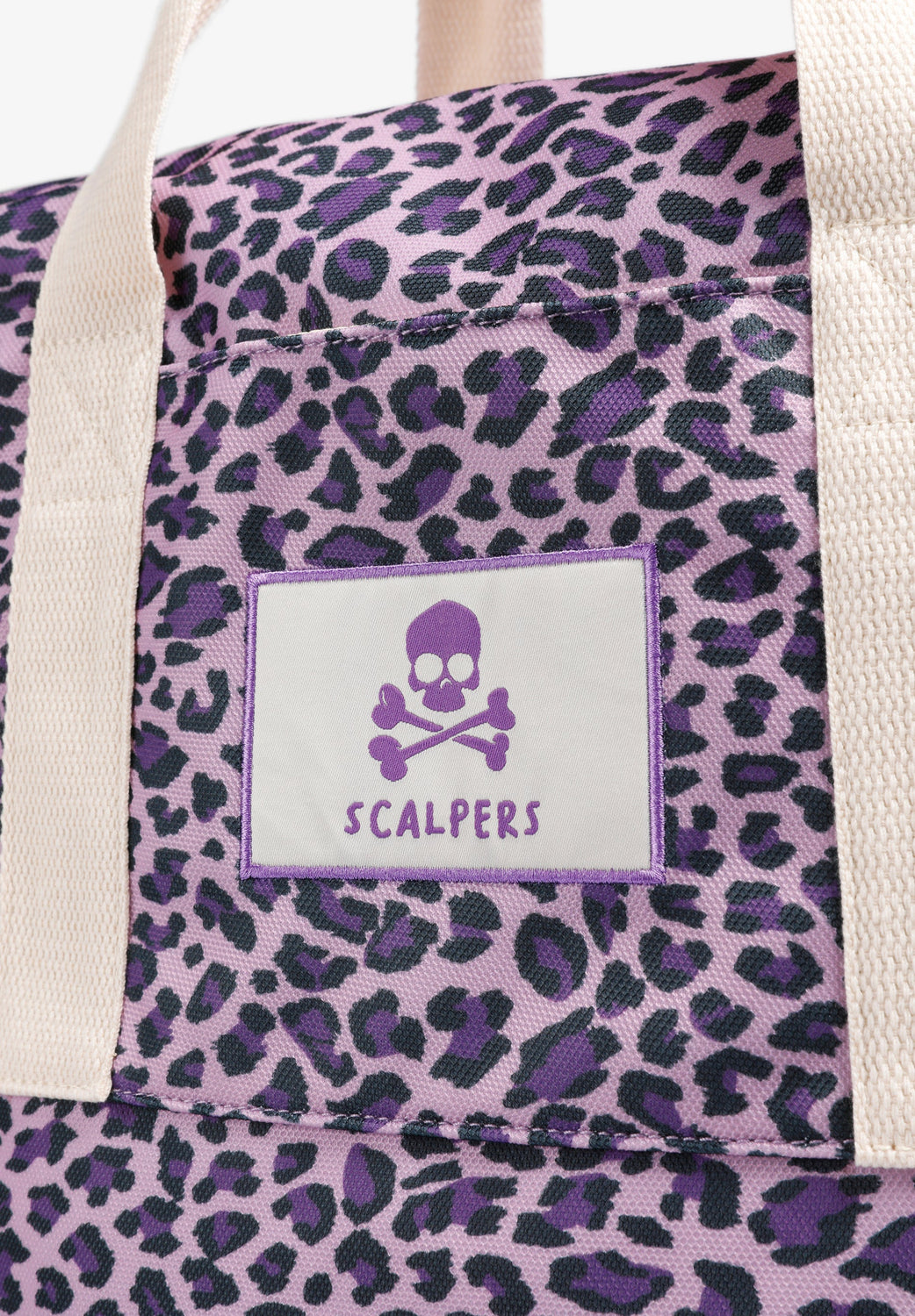 Bag with double strap. Animal print. Embroidered front label with logo and skull. Zip fastening. Logo detail on the inside.