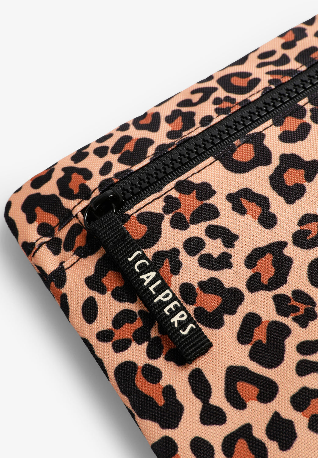 Animal print clutch. Front zip fastening. Rubberised patch with contrast logo on the front.