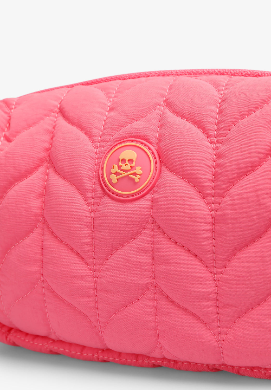 Synthetic toiletry bag. Front rubberised skull patch detail. Zip fastening.