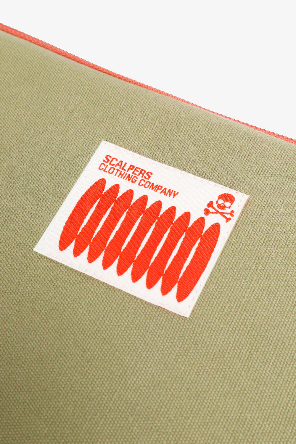 Briefcase made of 100% cotton. Front print patch with logo. Contrasting zip fastening.