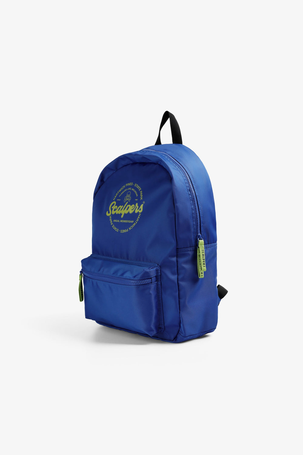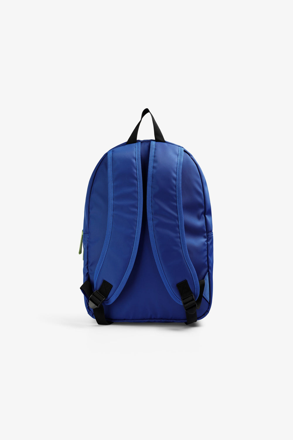 Backpack with front logo print. Made of 100% polyester. Zip fastening. Back straps. Top handle. Front zipped pocket. Height: 41 cm / Width: 31 cm / Depth: 14 cm