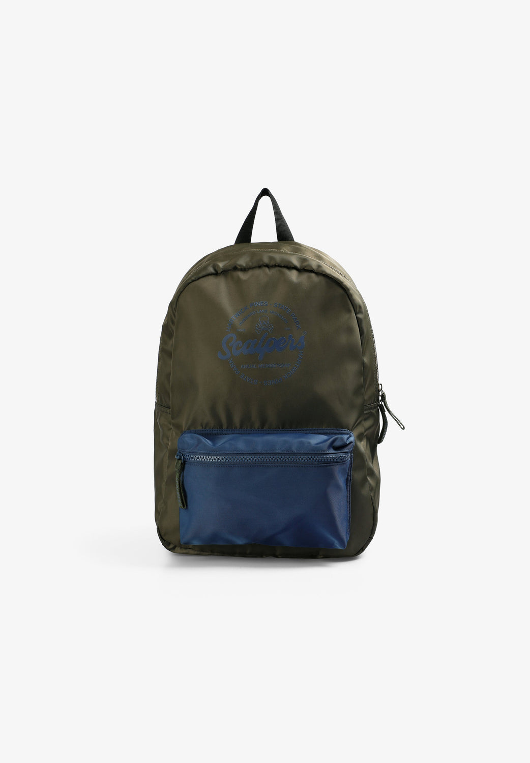Backpack with front logo print. Made of 100% polyester. Zip fastening. Back straps. Top handle. Front zipped pocket. Height: 41 cm / Width: 31 cm / Depth: 14 cm