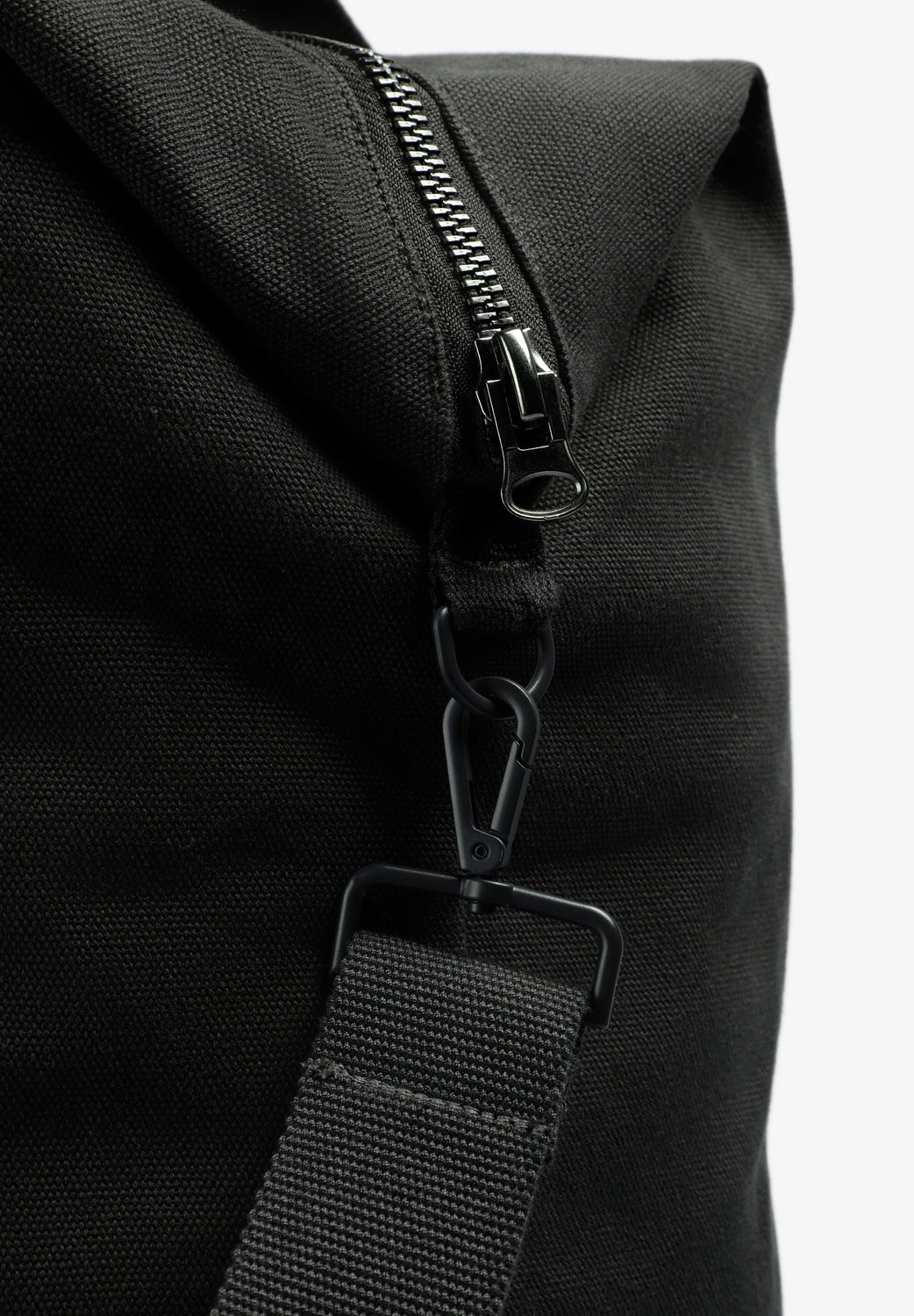 Bag made of 100% cotton. Short double handle. Long detachable strap. Contrast skull print and logo on front. Zip closure.
