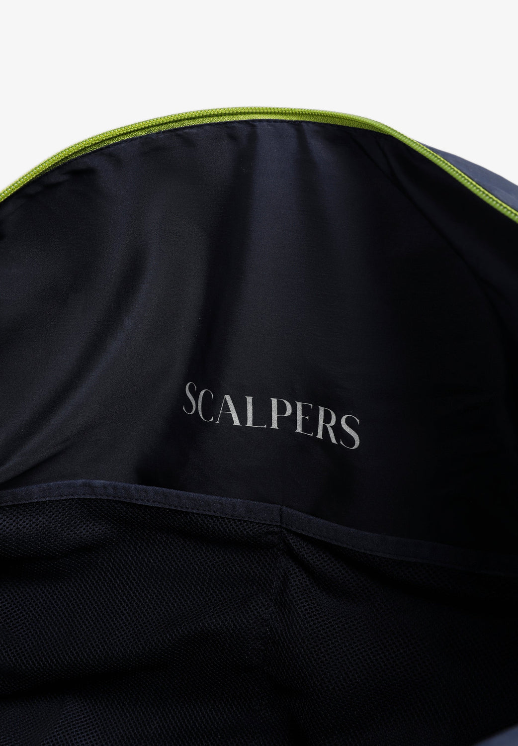Bag made of a technical fabric. Main and side compartments with zip closure. Zip fastening, short handles and long detachable strap. Front logo and skull print.