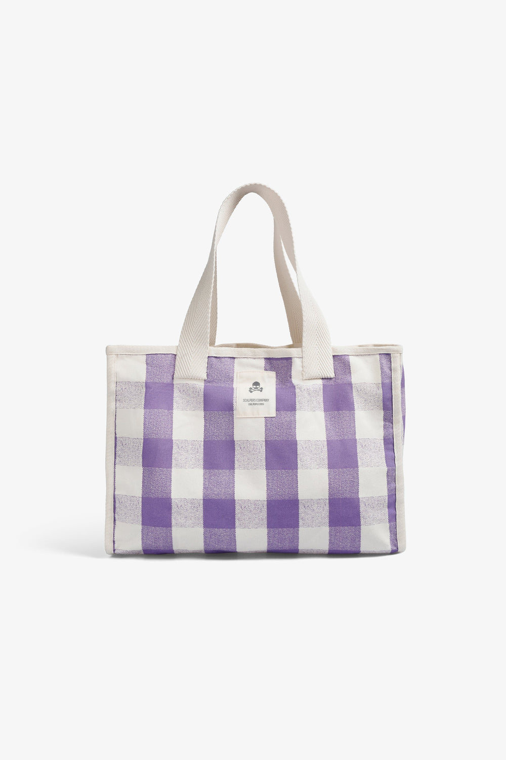 Tote bag made of 100% cotton. Double strap. Front label with logo and skull. Checked print