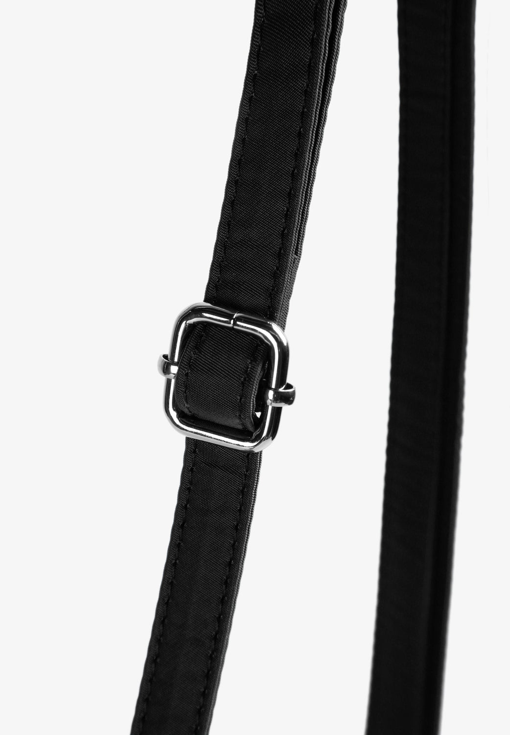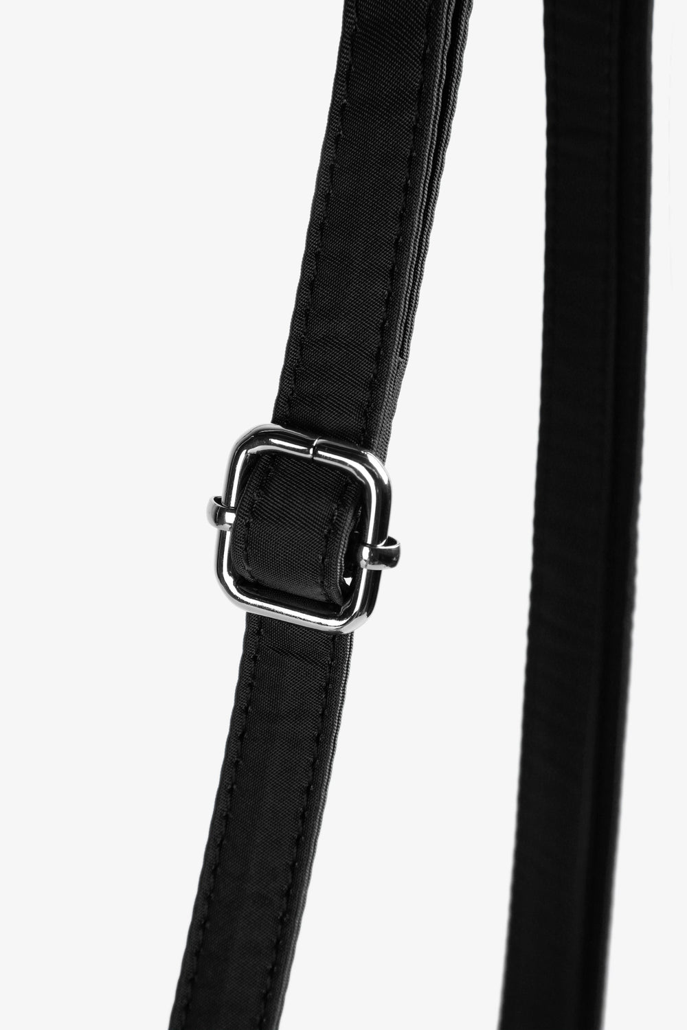 Bag made of 100% nylon with cotton lining. Adjustable and detachable shoulder strap. Inner pockets. Embroidered monogram label detail on front. Zip closure. Detachable charm detail on closure.