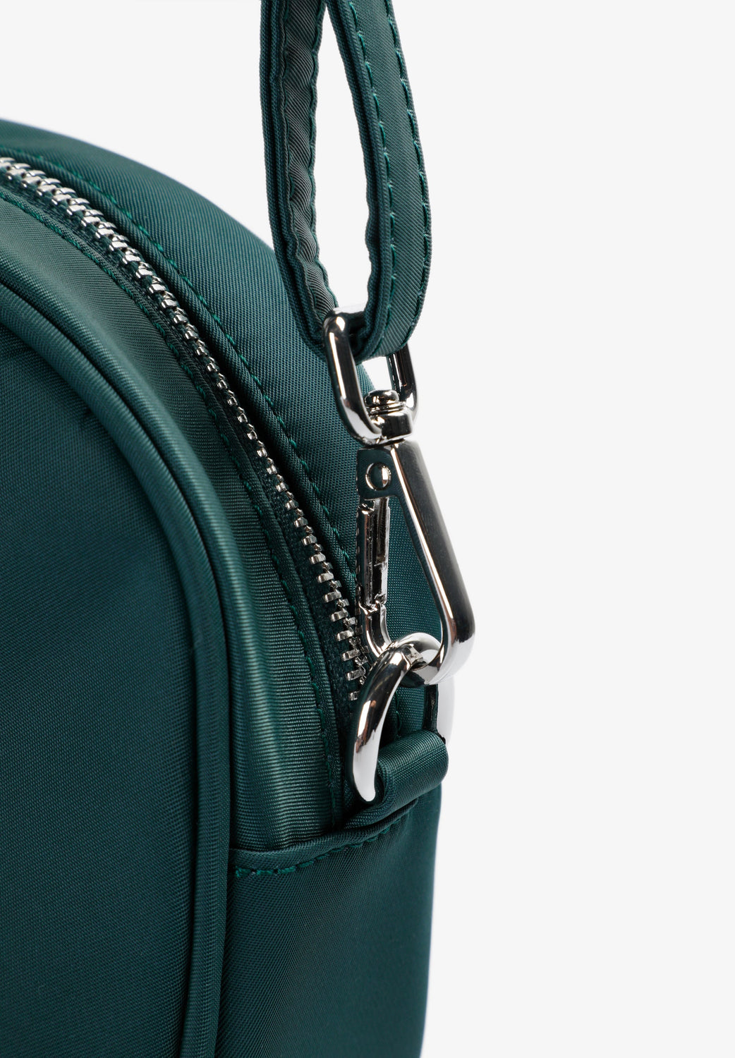 Bag made of 100% nylon with cotton lining. Adjustable and detachable shoulder strap. Inner pockets. Embroidered monogram label detail on front. Zip closure. Detachable charm detail on closure.