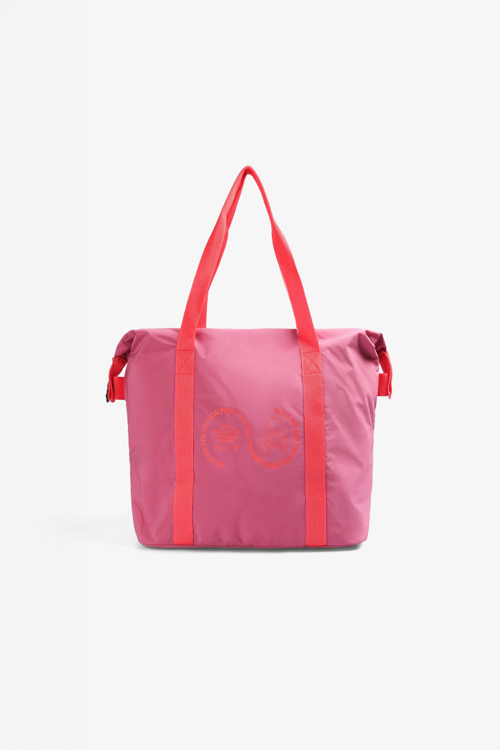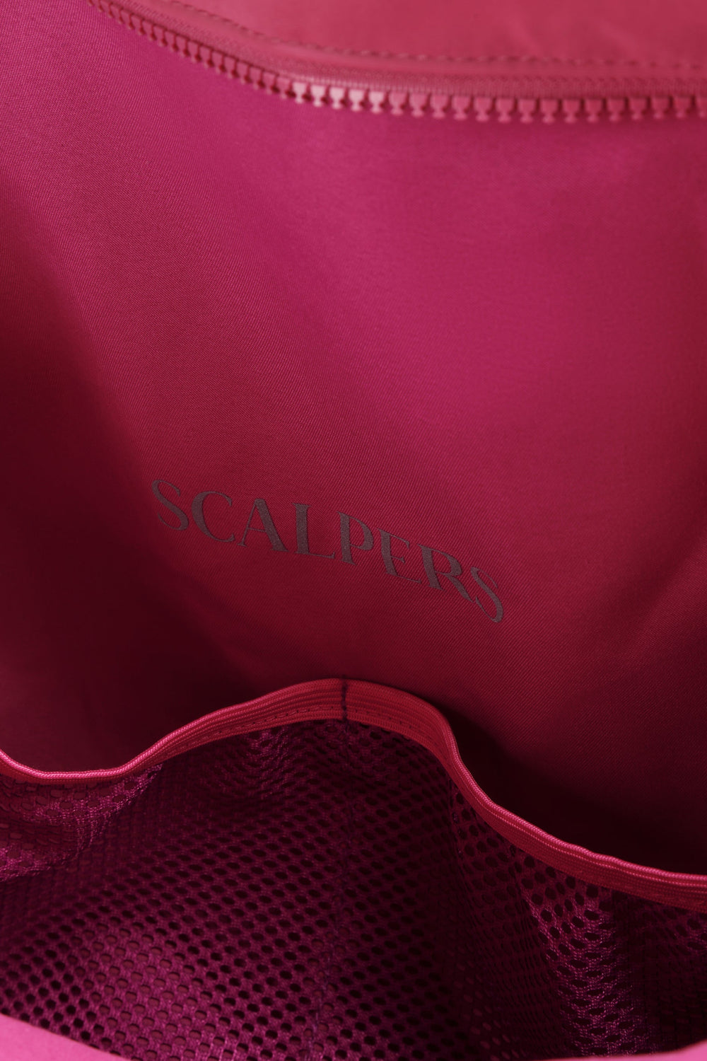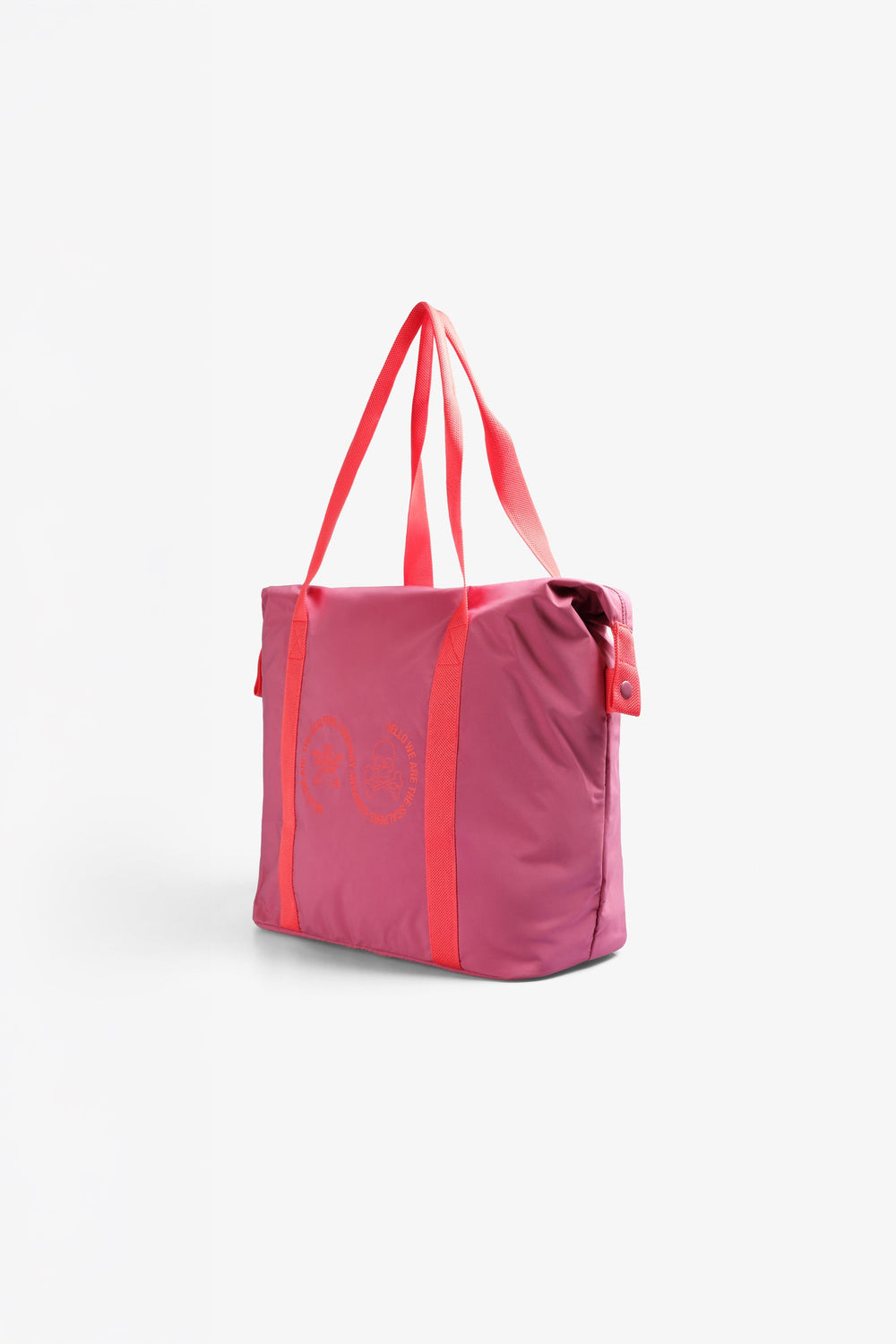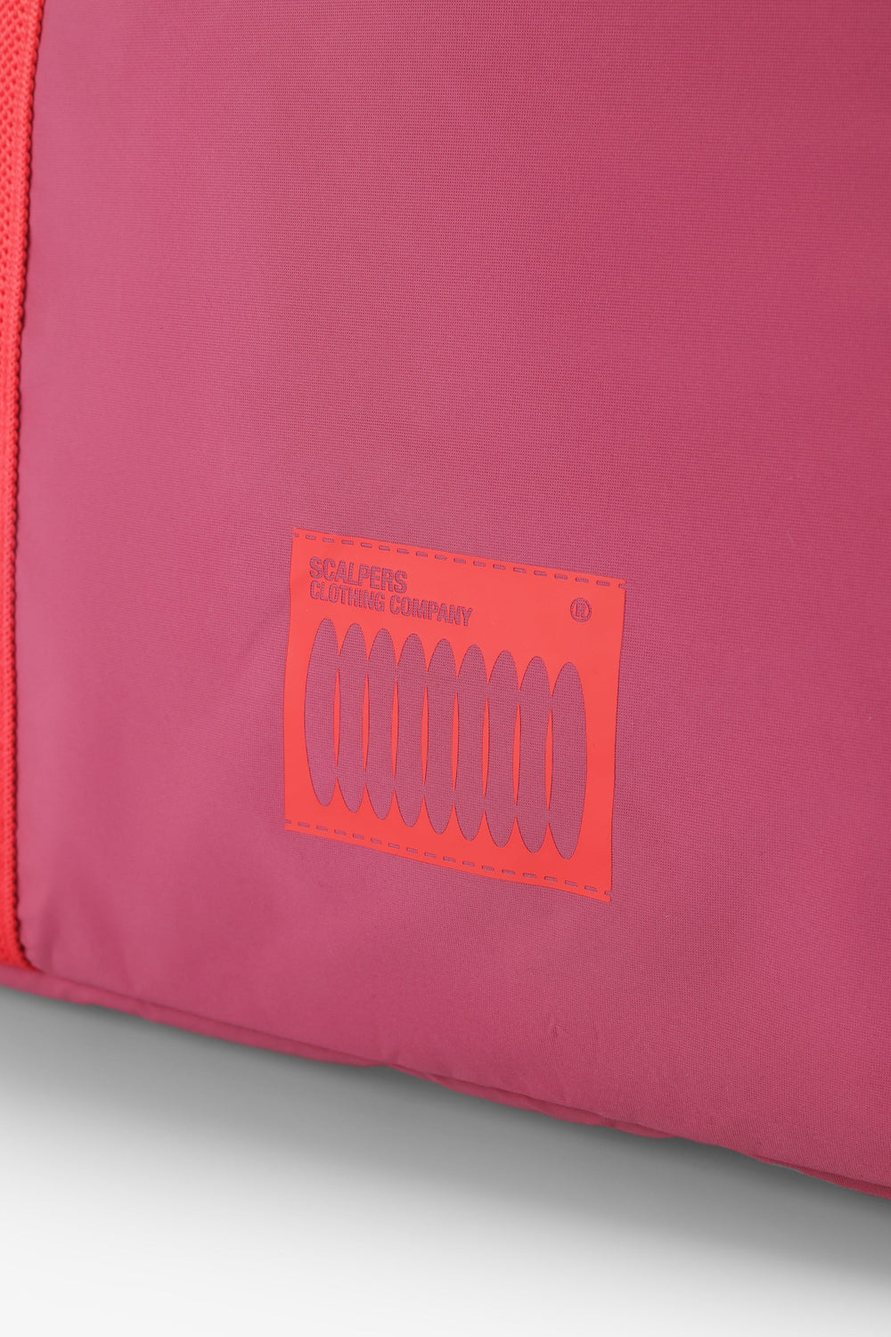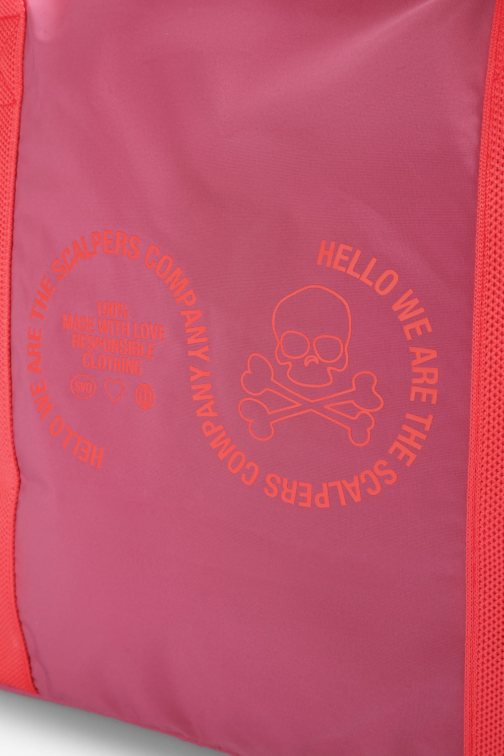 Synthetic bag with double strap. Double slider zip fastening. Logo detail on the inside. Front and back print with logo and skull.
