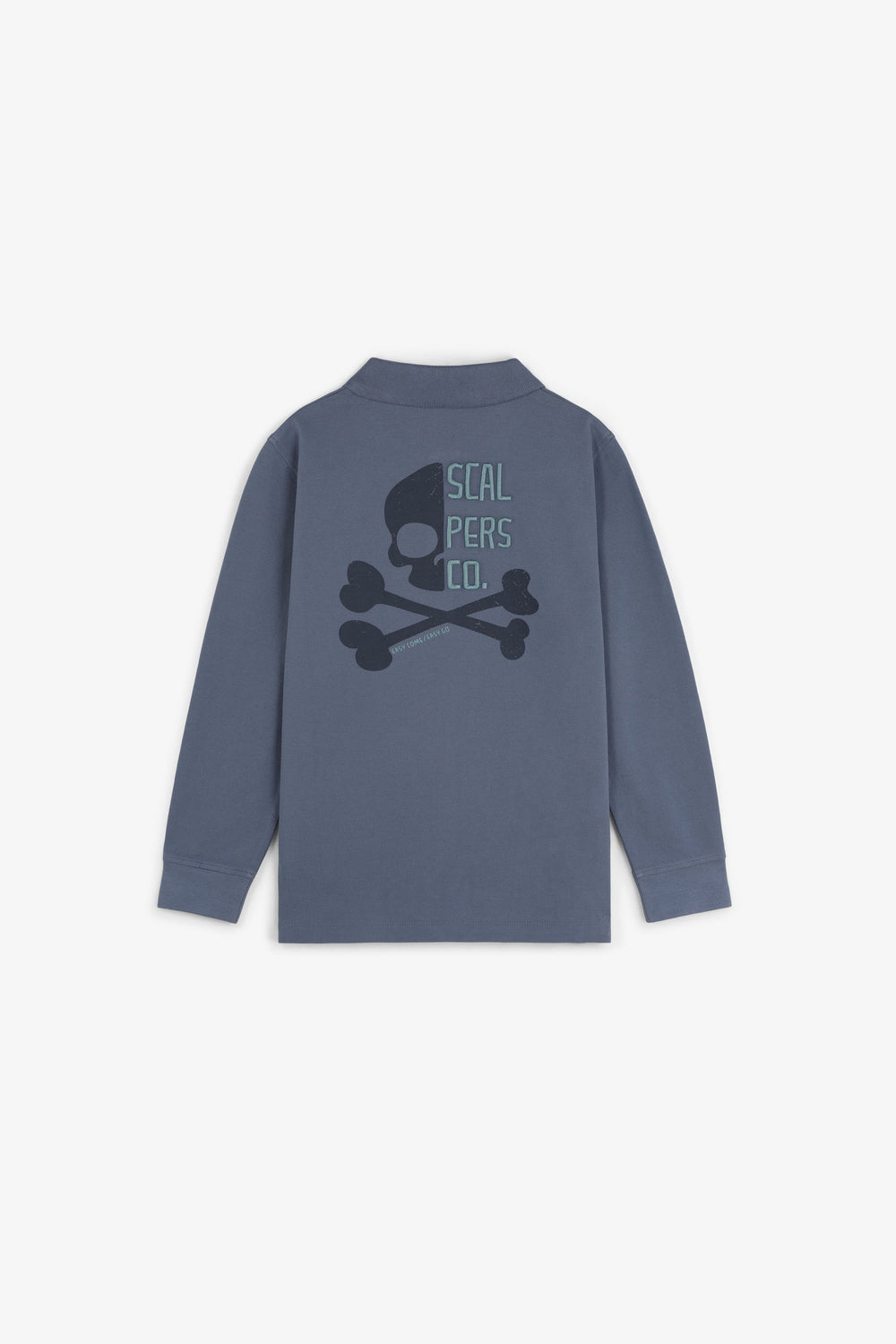 Polo shirt made of 100% BCI cotton. Regular Fit. Long sleeves. Classic collar with buttons. Embroidered logo and skull print on back. Embroidered patch detail on the lower front.