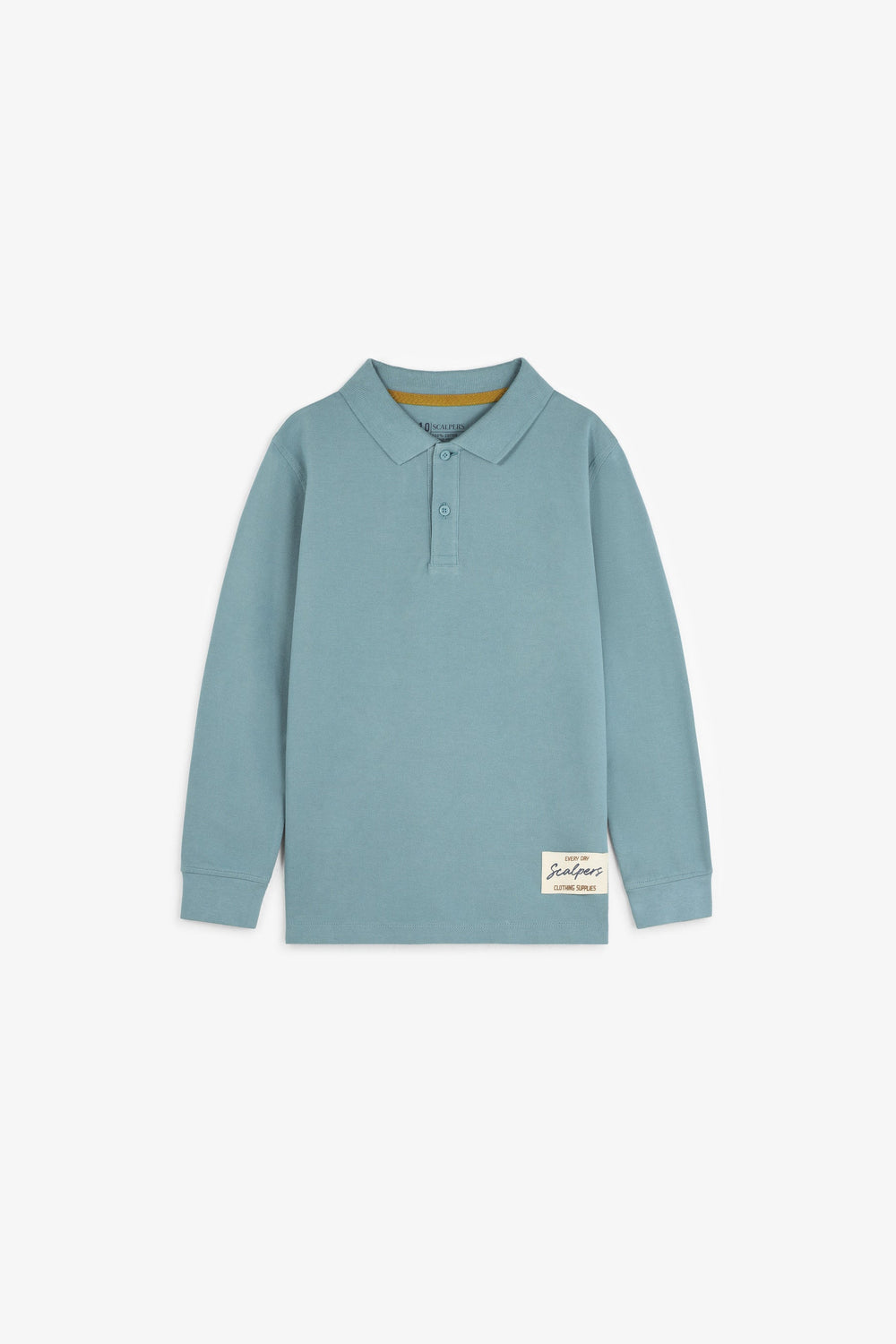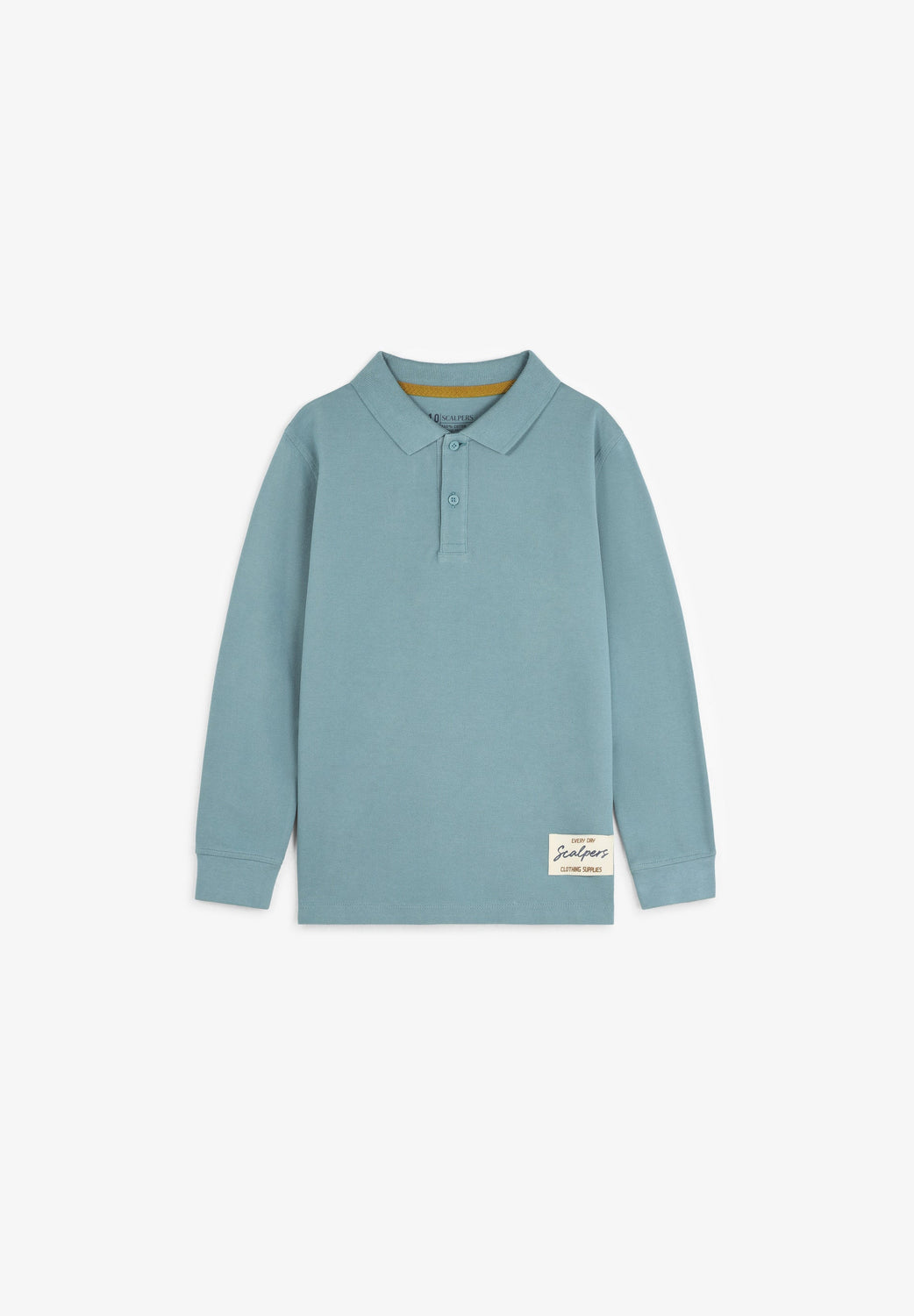 Polo shirt made of 100% BCI cotton. Regular Fit. Long sleeves. Classic collar with buttons. Embroidered logo and skull print on back. Embroidered patch detail on the lower front.
