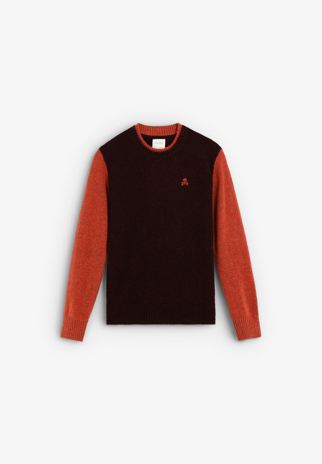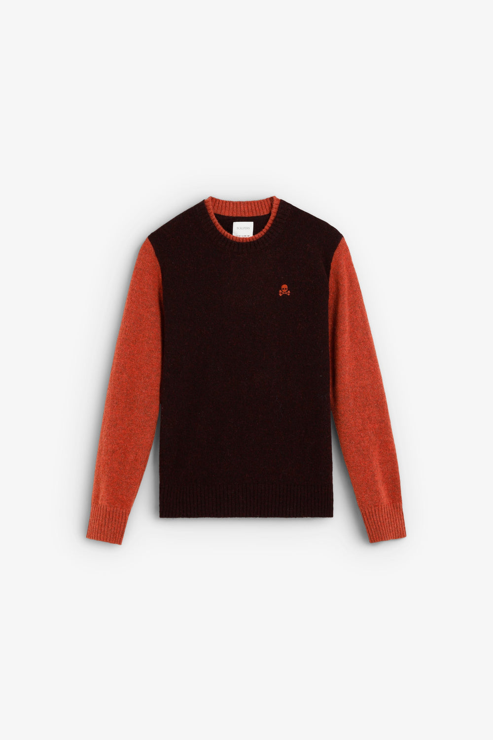 Knit sweater. Round neck and contrasting long sleeves. Contrast embroidered logo detail on the chest.