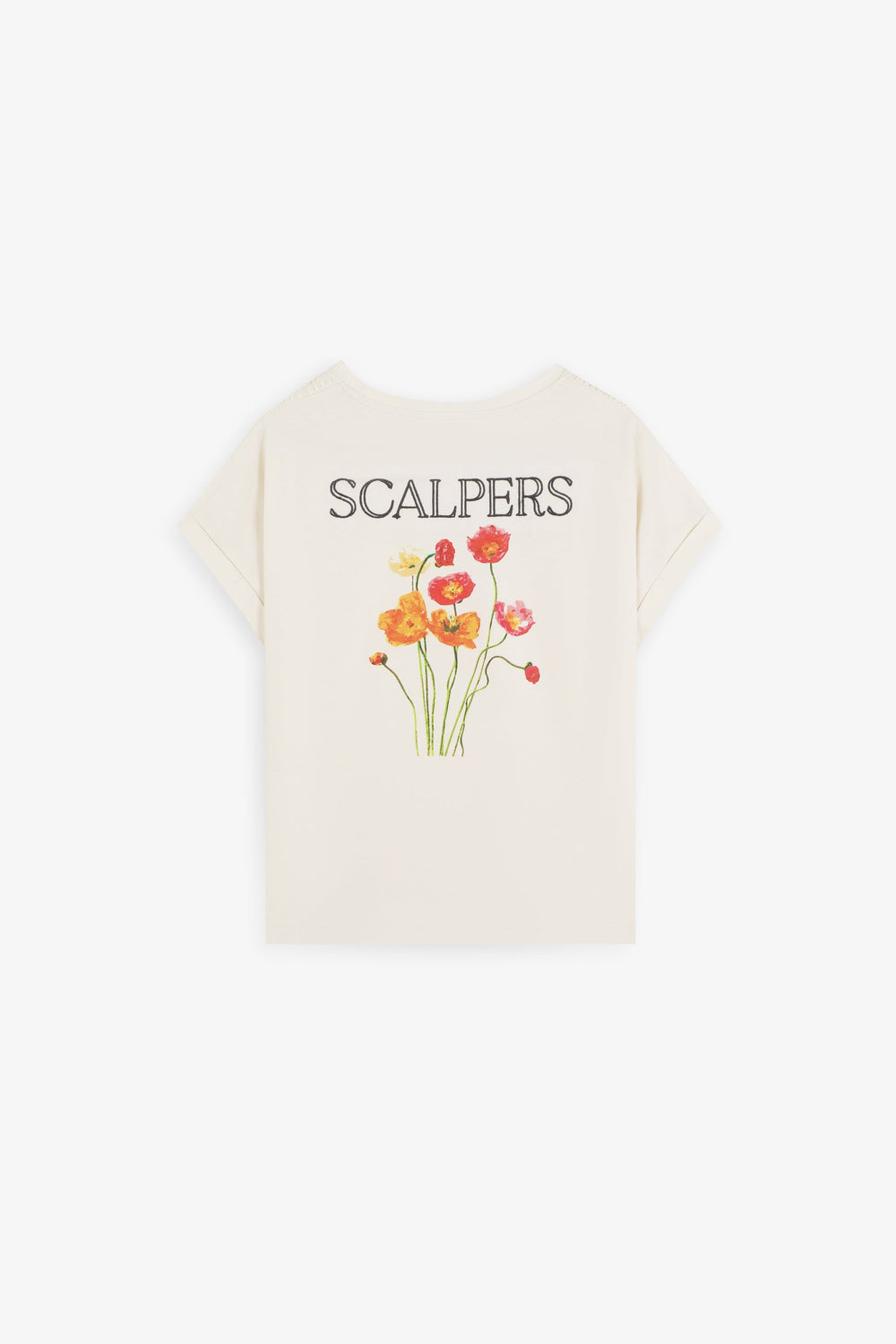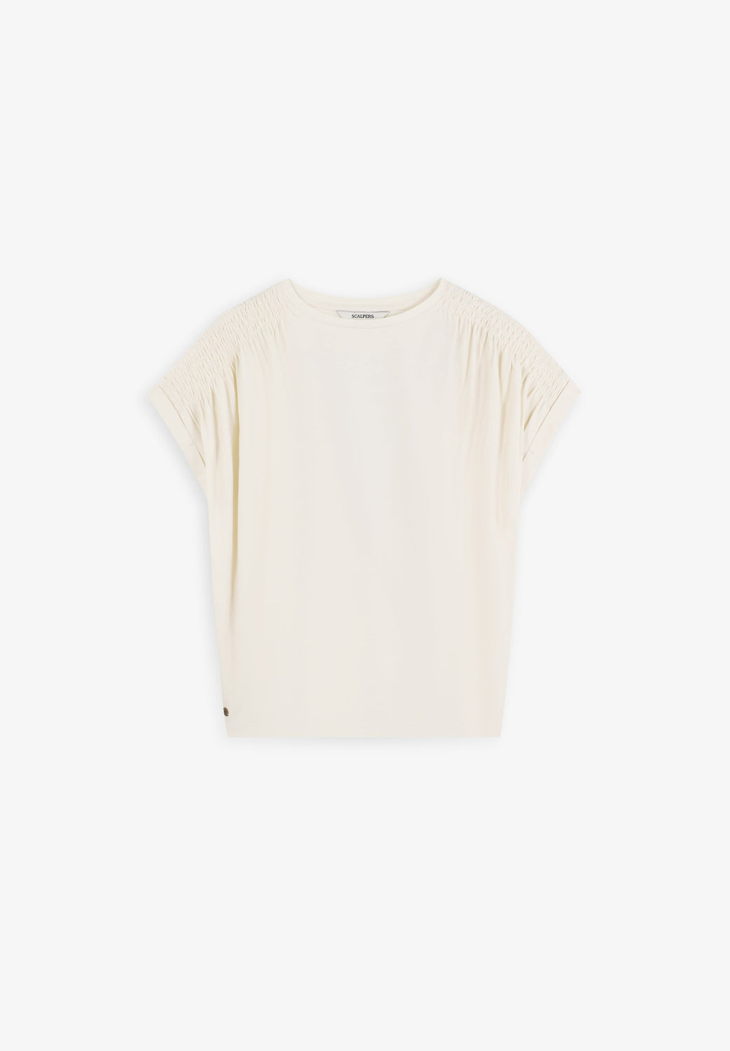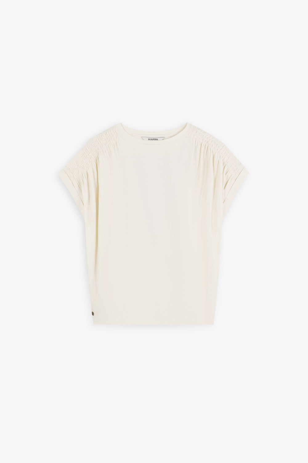 T-shirt made of 100% BCI cotton. Short sleeve. Round neck. Gathered detail on sleeve and metallic skull on waist. Back print with embroidered logo.